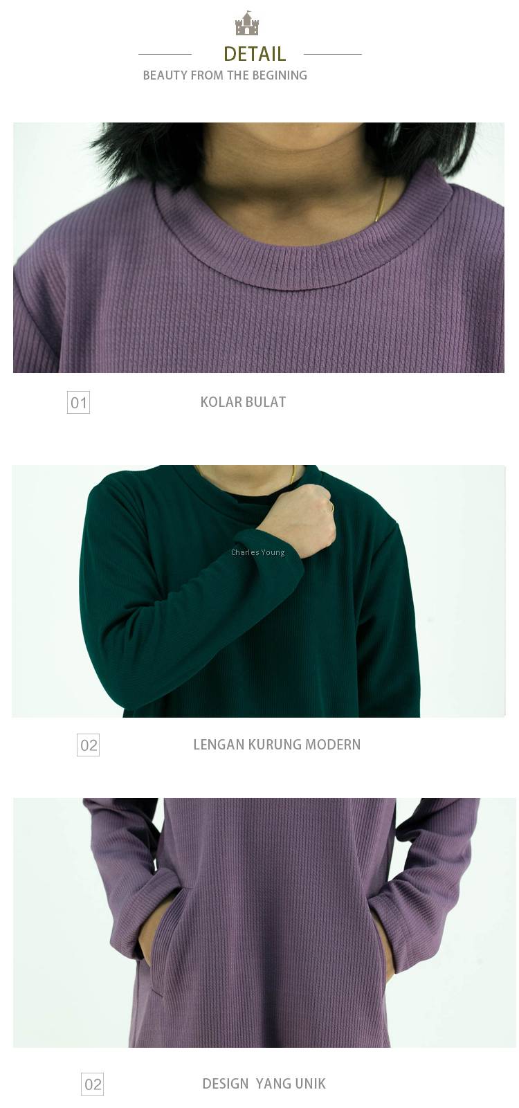 | Pattern/Finishing | • Dress Style: Pasang Kurung Modern • Closure Type: Round Neck Colour • Shirt Type: Regular • Front Style: Flat • Sleeve Length: Long Sleeve • Thickness: Midweight |
