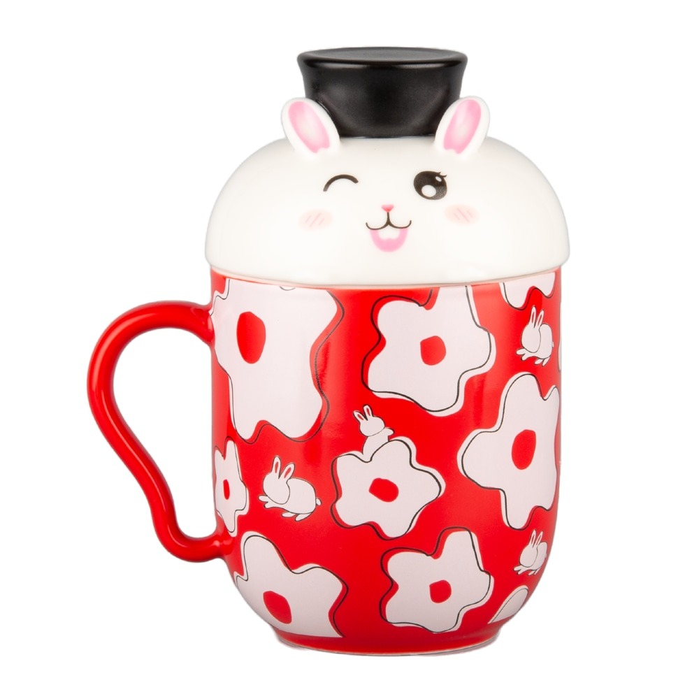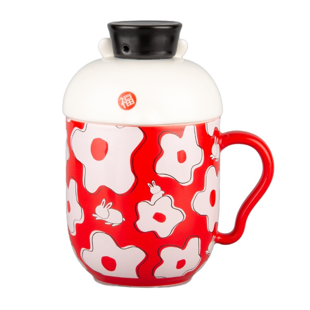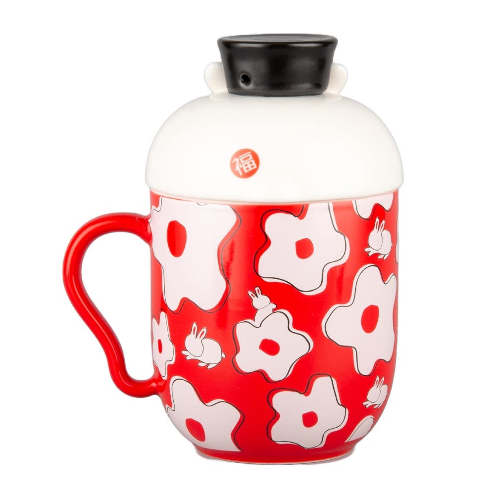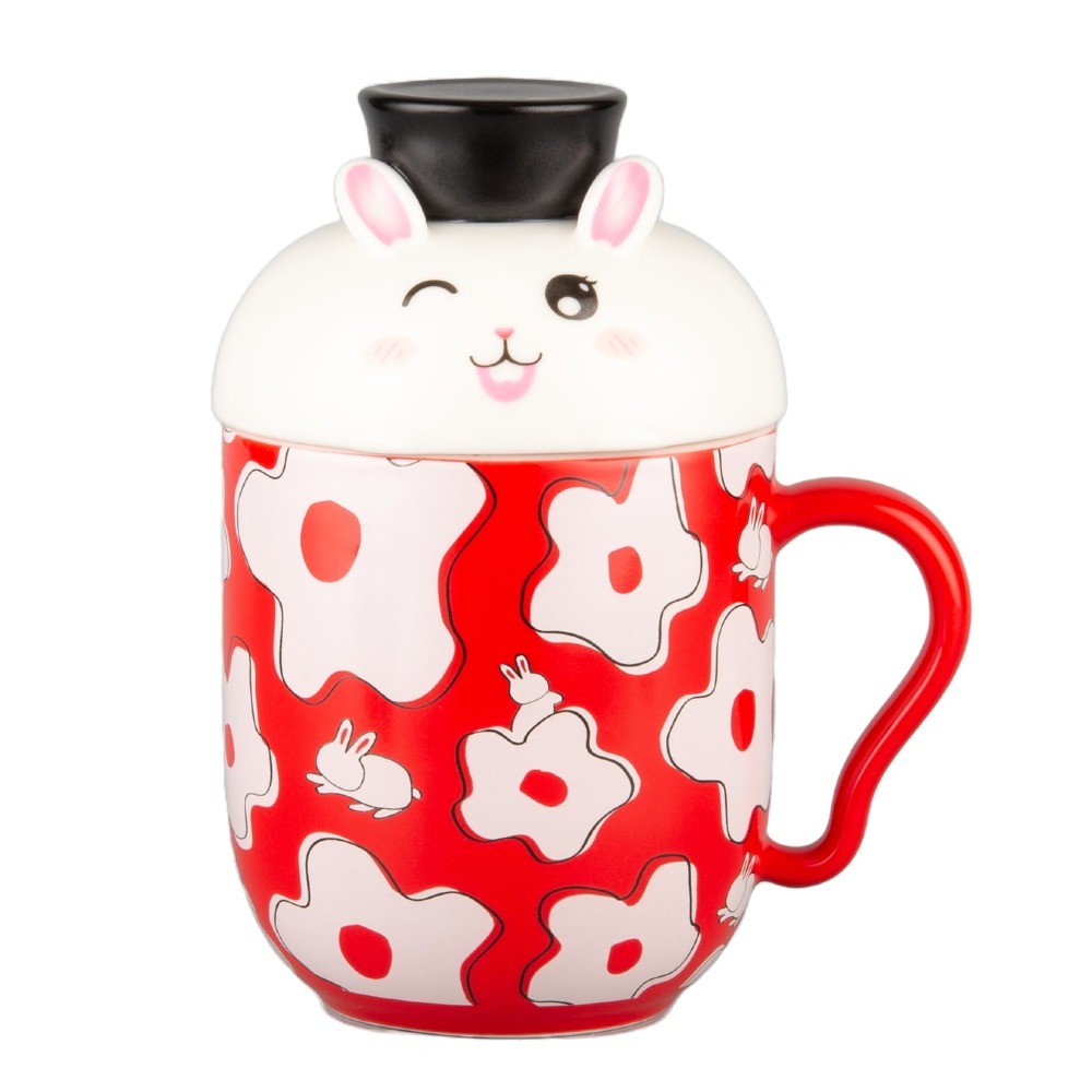 Color King Happy2 Ceramic Mug with Lid 300ML - White Flower