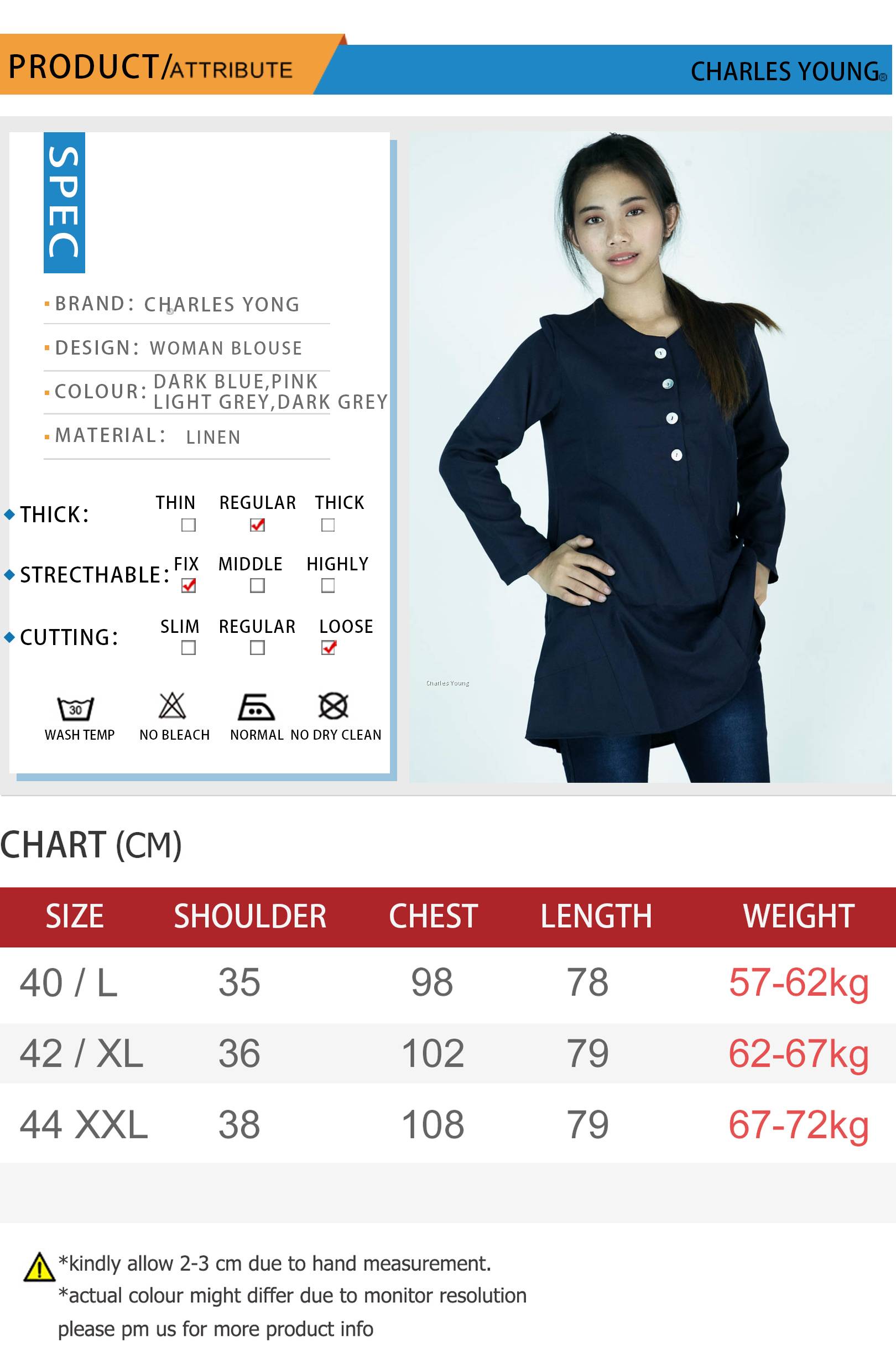 | Size / Product Measurement (L x W x H) | Please refer to the size chart |