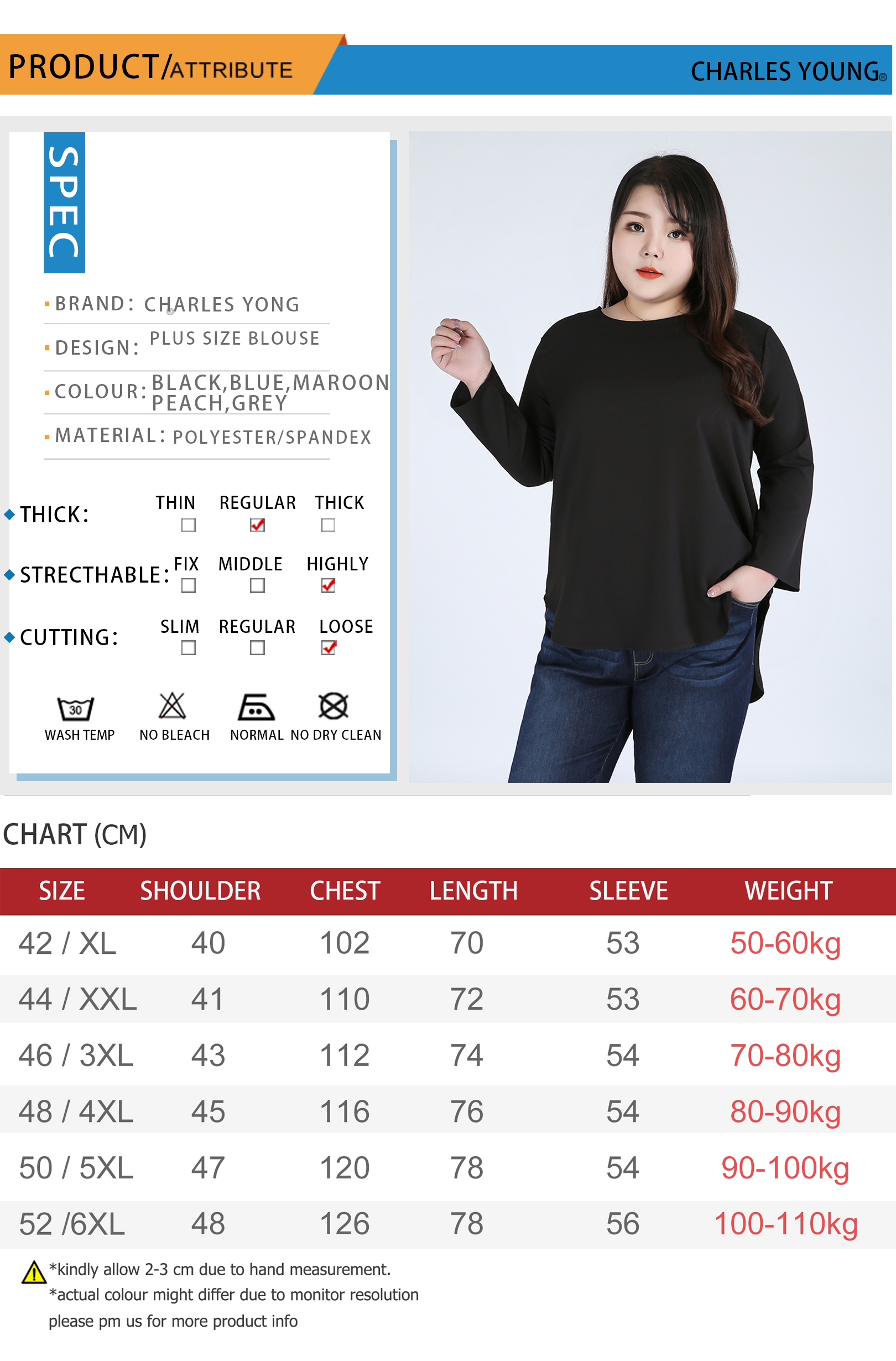 | Size / Product Measurement (L x W x H) | Please refer to size chart |