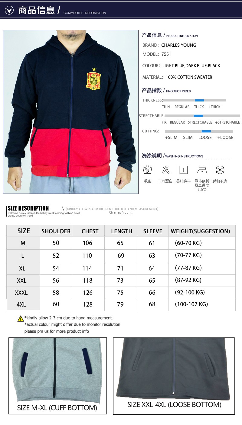 CY 7551 Plus Size Sweater Cotton Fleece Jogging Gym Yoga Trekking Marathon Football Soccer