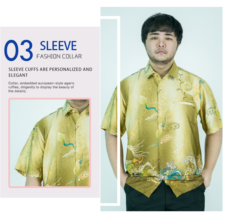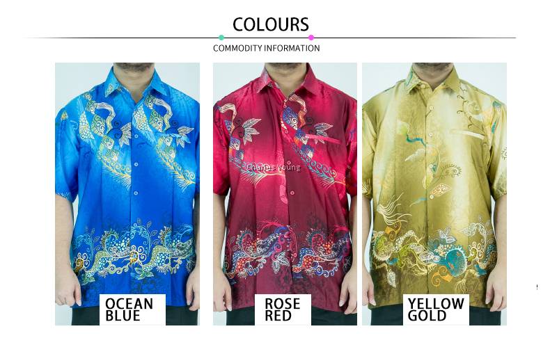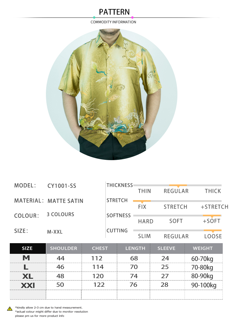 CY CY1001SS Men Baju Batik Wrinkle Free Vintage Satin Short Sleeve Formal Wear Shirt