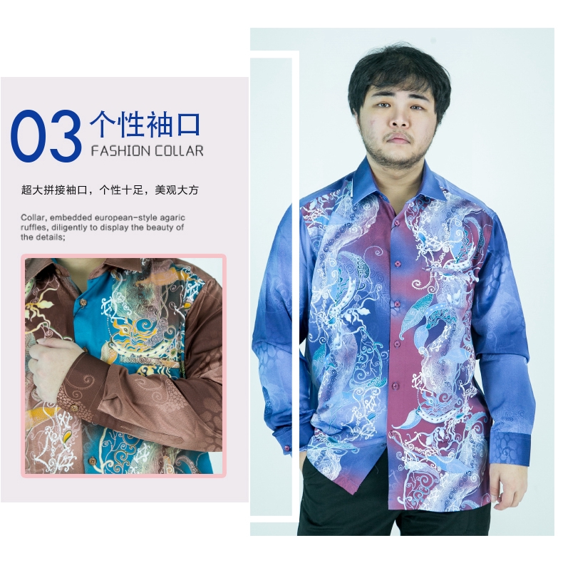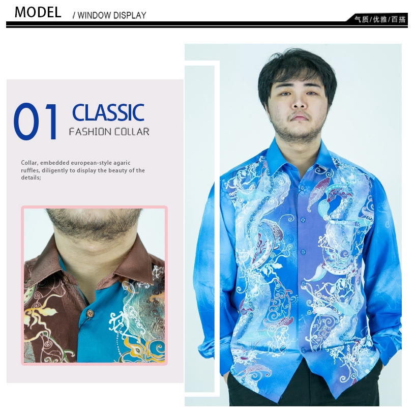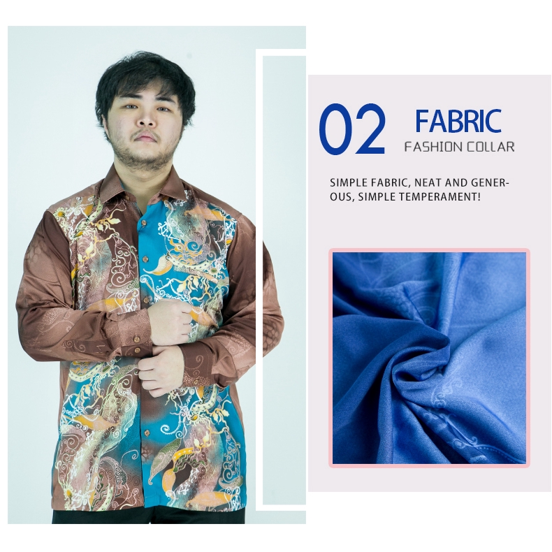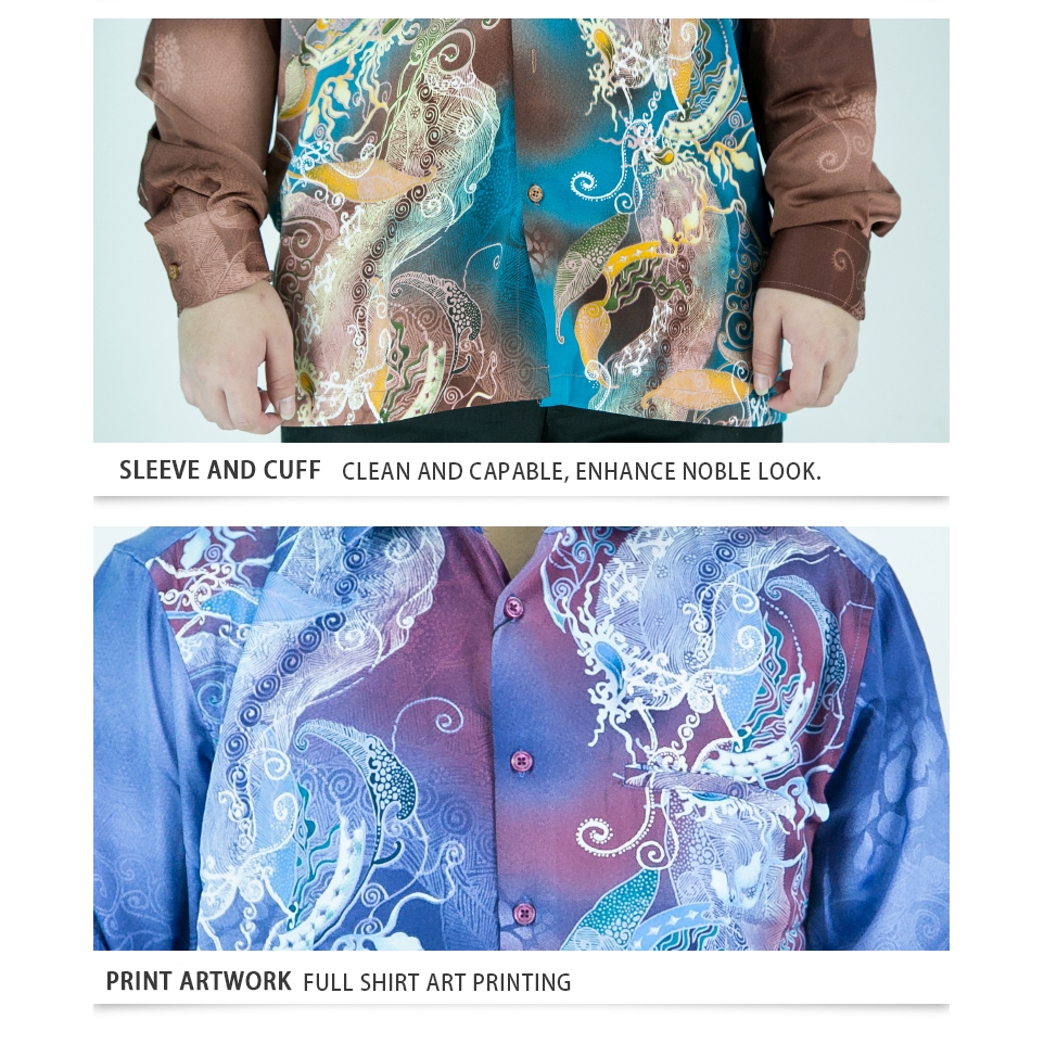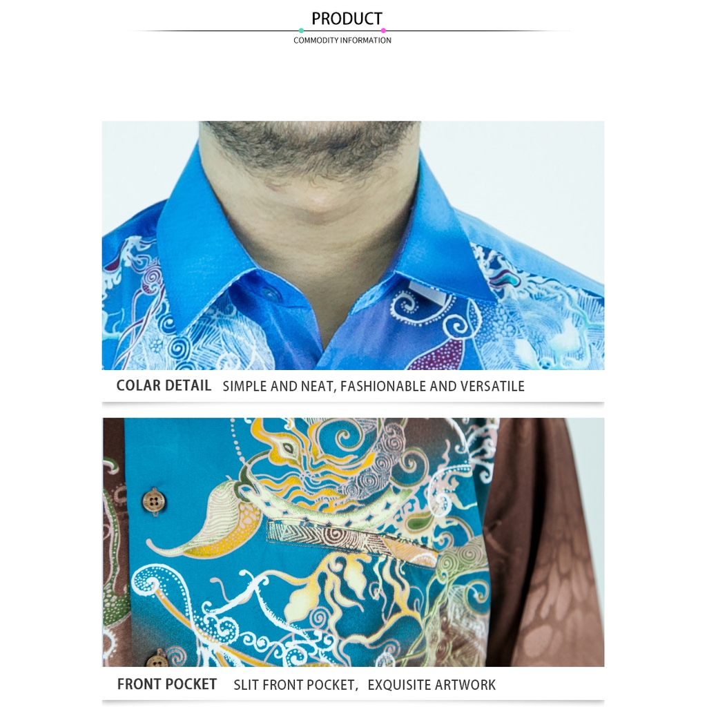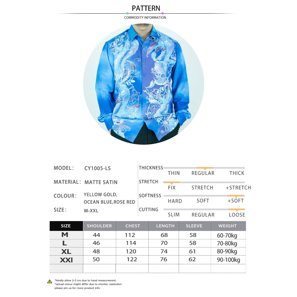 CY CY1005 Men Baju Batik Wrinkle Free Vintage Satin Long Sleeve Formal Wear Shirt