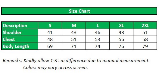 | Size / Product Measurement (L x W x H) | Please refer to the size chart |