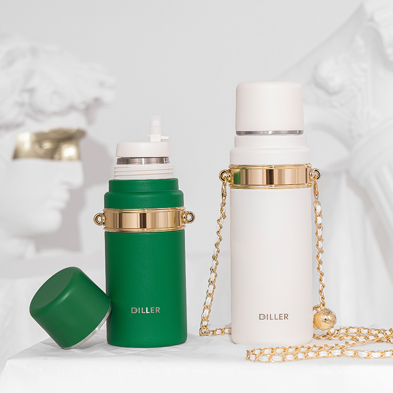 Diller Glamour Multifunction Thermo Water Bottle with Adjustable Strap 550ml (Green)