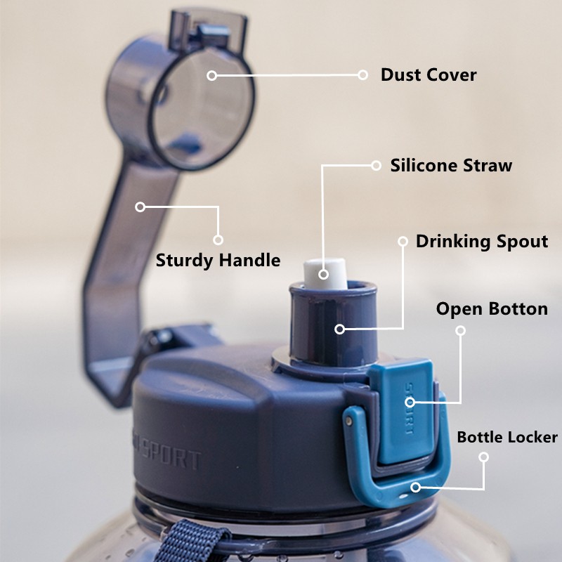 - Lightweight and portable plastic gallon water bottle. With an easy- to grab handle, equipped with flip top opening mechanism, this water bottle makes you easier to carry it to anywhere anytime.
