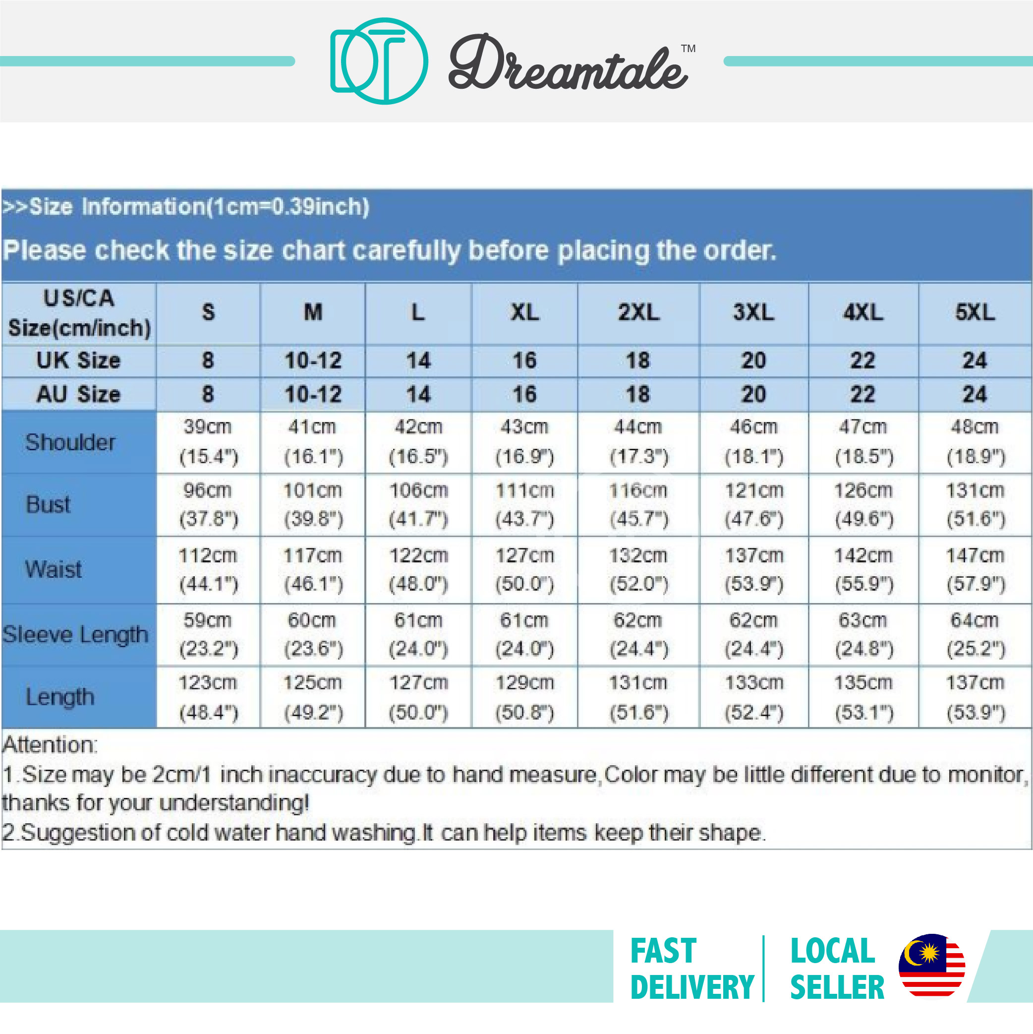 | Size / Product Measurement (L x W x H) | Please refer to the size chart |