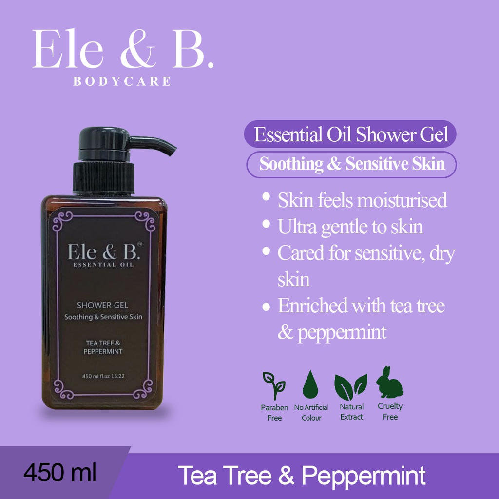 Ele & B. Essential Oil Soothing & Sensitive Skin Shower Gel 450ml (Tea Tree and Peppermint)