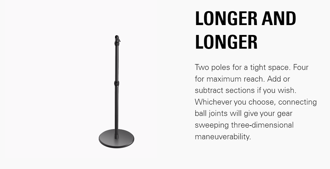 | Highlights | - Provides extra reach and three-dimensional adjustability for cameras etc. - 4-Section steel arm with ball joints: 1x long tube (CA. 24 Centimetre / 9.45 inch.), 1x medium tube (CA. 17 Centimetre/ 6.7 inch.), 2x short tubes (CA. 8 Centimetre / 3.15 inch. each). - Compatible with all Elgato Master Mount accessories. |