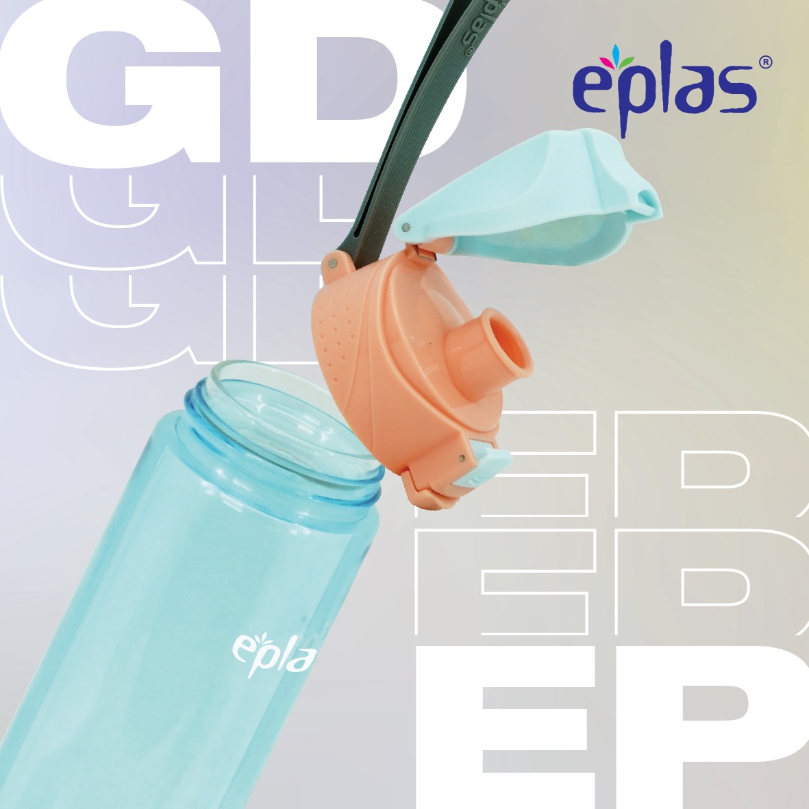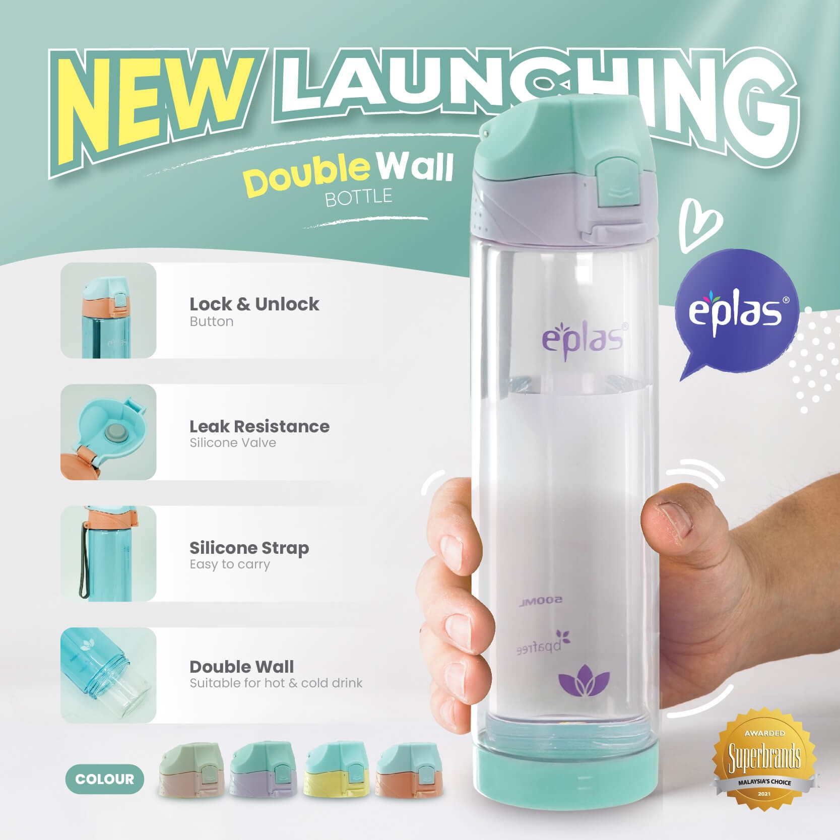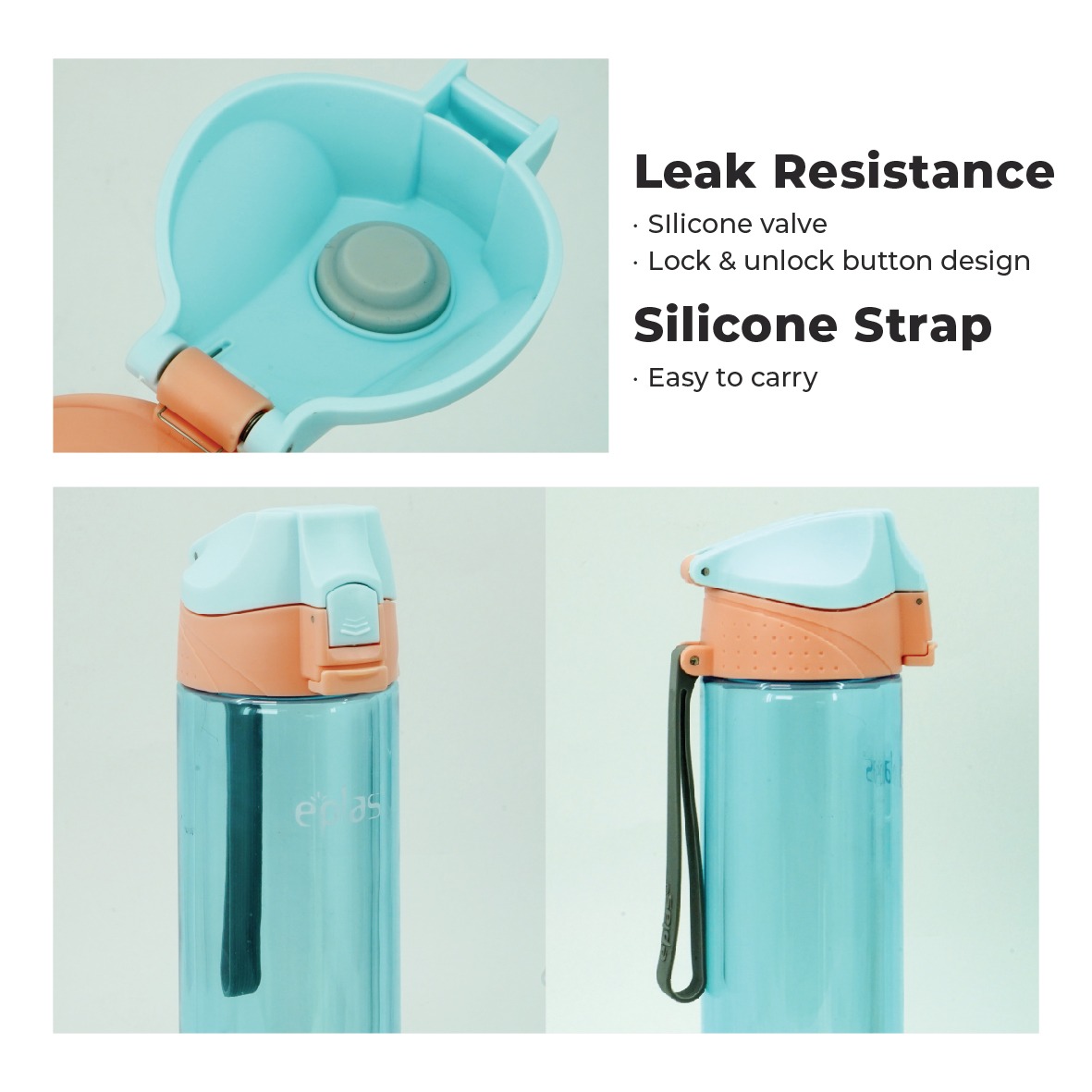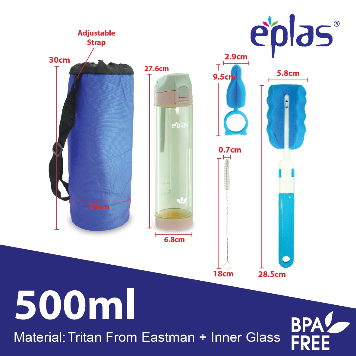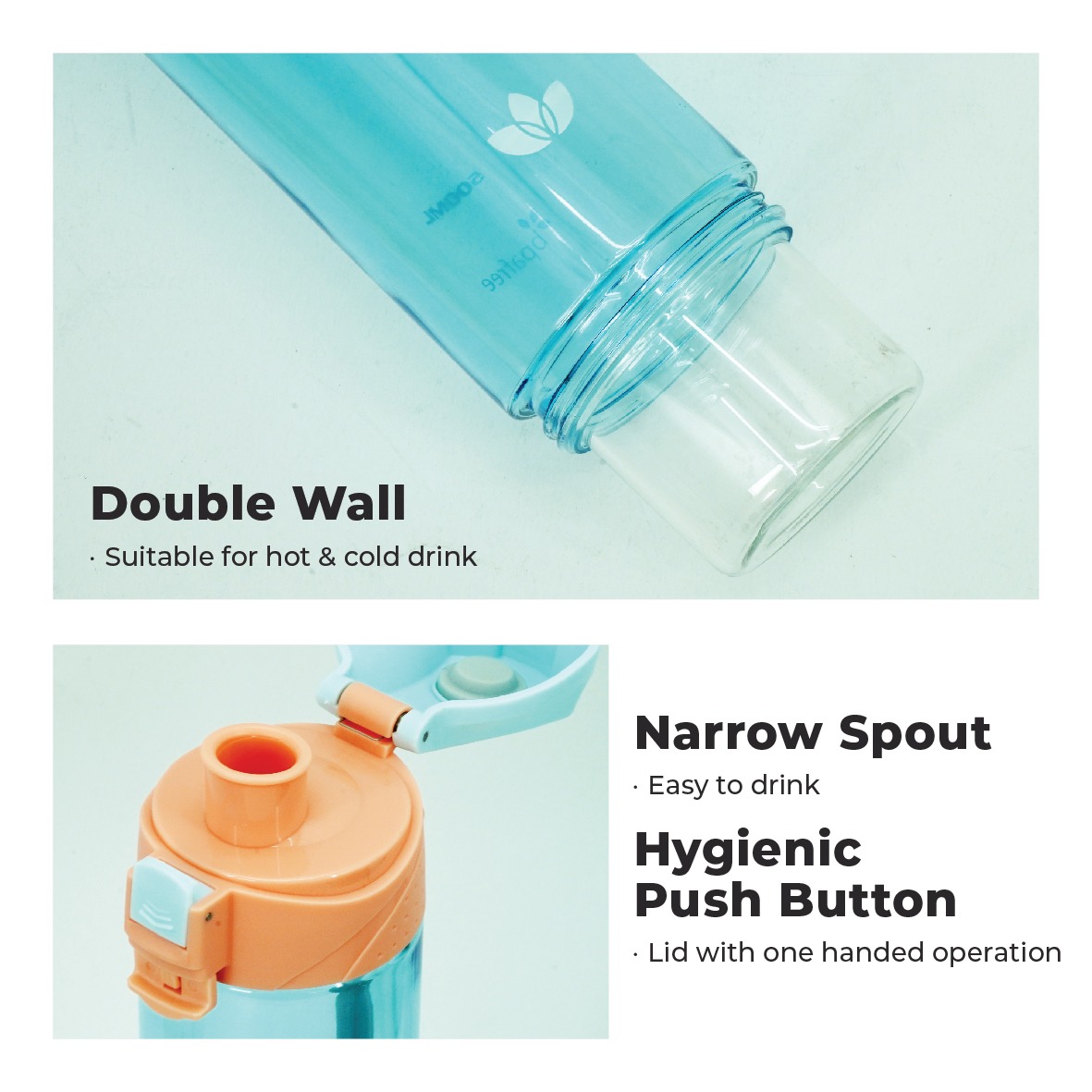 EPLAS GLASS 500ml Double Wall Diamond Glass Water Bottle With Push Button & Silicone Strap EPGD-500 - BLUEORANGE