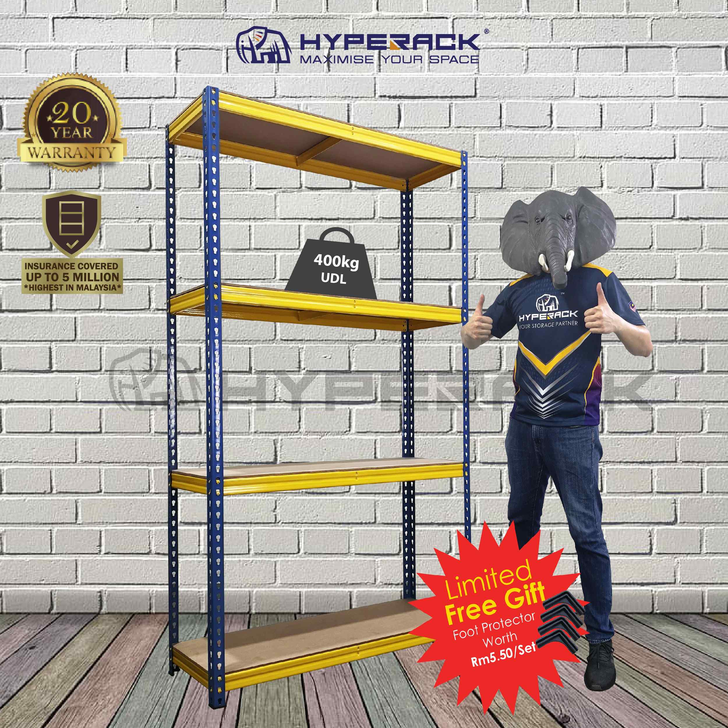 | Highlights | - Colour: Blue & Yellow - Level: 4 Levels - Length 120cm = 400kgs U.D.L. per level - Center Support: Only apply for size 1200/1500 (1 pc), 1800 (2pcs) & Enhance middle part loading - Butterfly Pin: No Bolt & Nut needed, Easy to install - Unique Groove Beam: Enhance beam strength, more lasting |