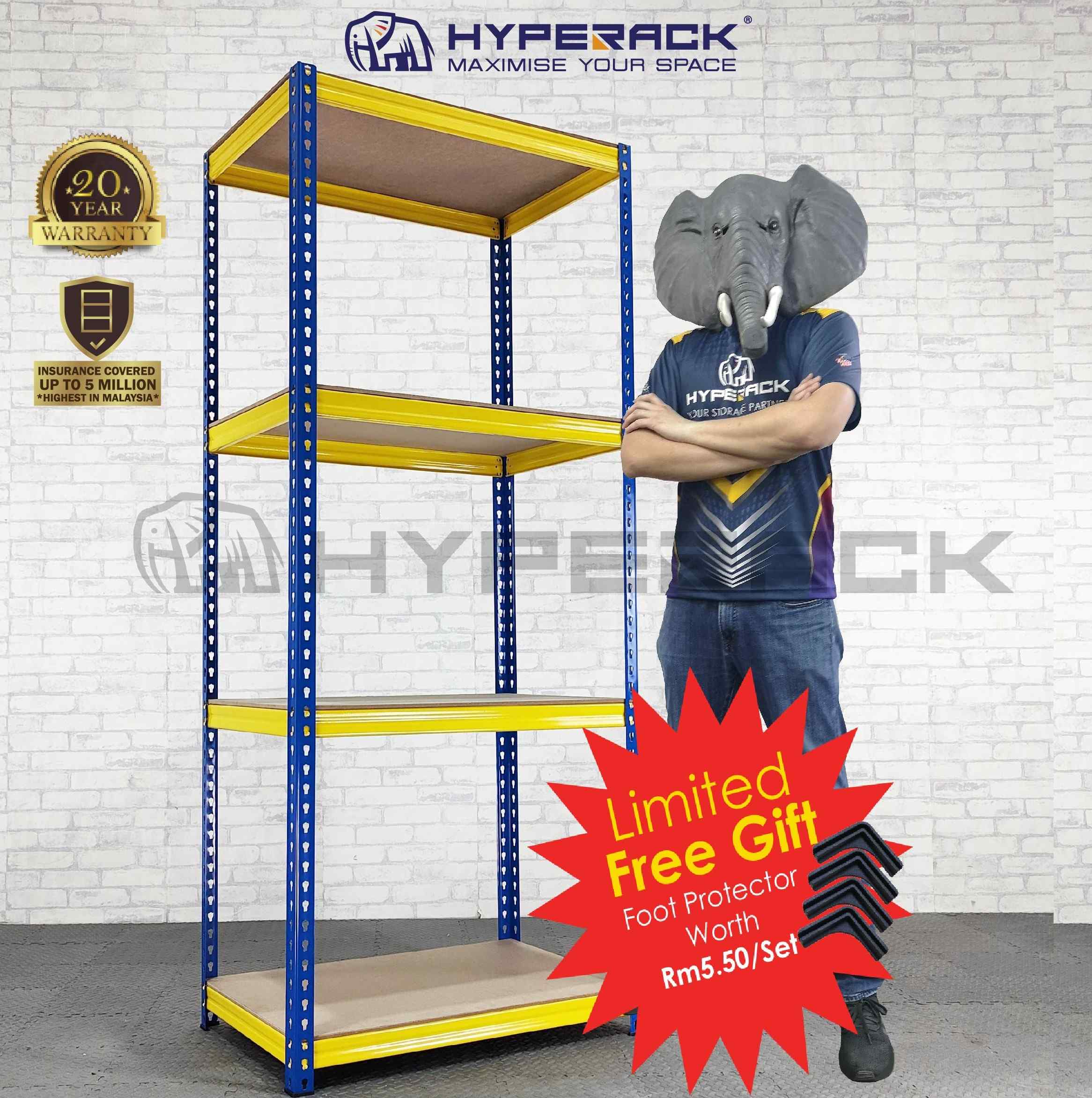 | Highlights | - Colour: Blue & Yellow - Level: 4 Levels - Length 90cm = 400kgs U.D.L. per level - Center Support: Only apply for size 1200/1500 (1 pc), 1800 (2pcs) & Enhance middle part loading - Butterfly Pin: No Bolt & Nut needed, Easy to install - Unique Groove Beam: Enhance beam strength, more lasting |
