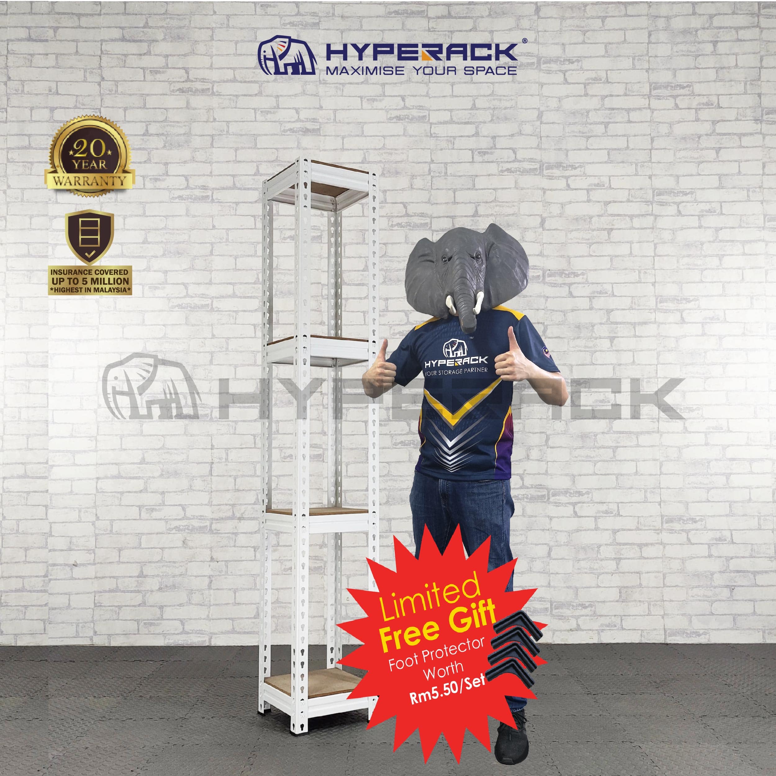 | Highlights | - Level: 4 Levels - Loading Capacity: 400kgs U.D.L. per level - Butterfly Pin: No Bolt & Nut needed, Easy to install - Unique Groove Beam: Enhance beam strength & More lasting - 8mm HDF Board: High Density Fiber Board & More durable |