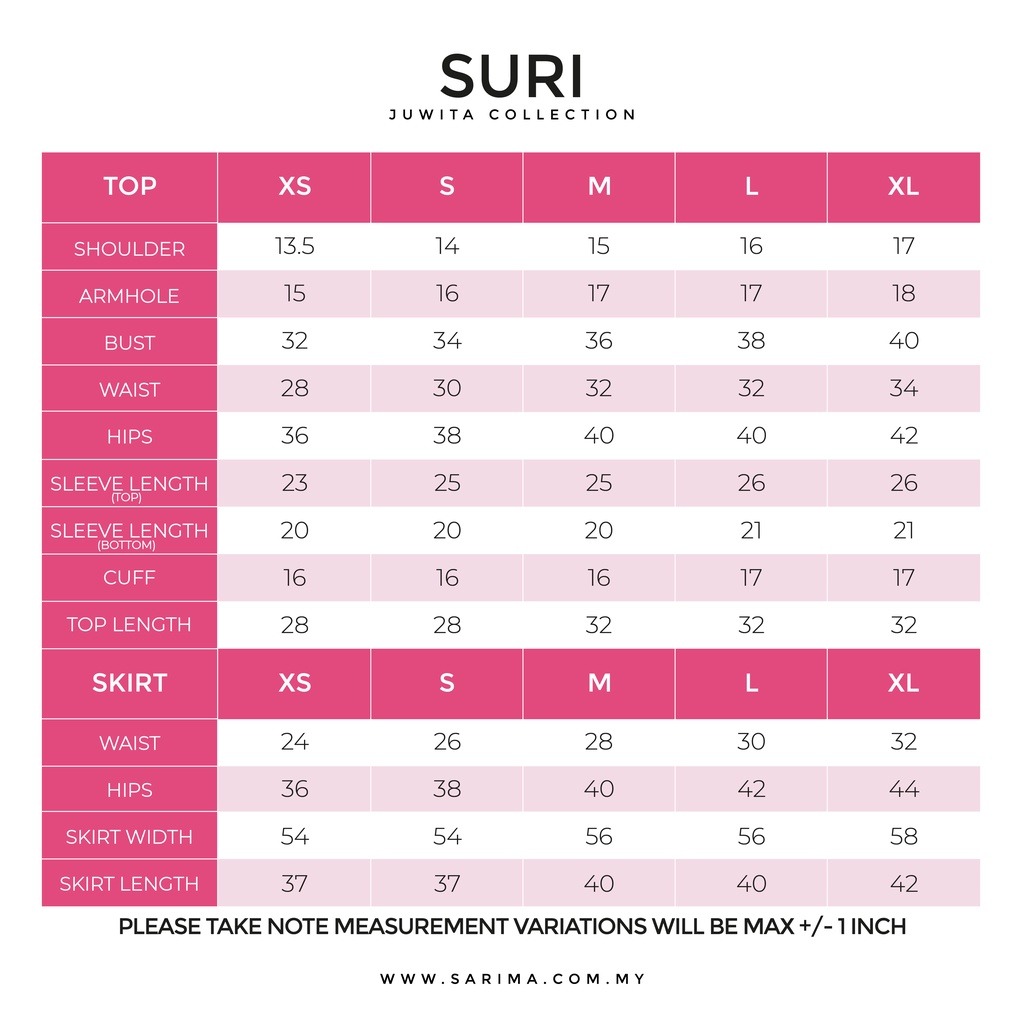 | Size / Product Measurement (L x W x H) | Please refer to the size chart |