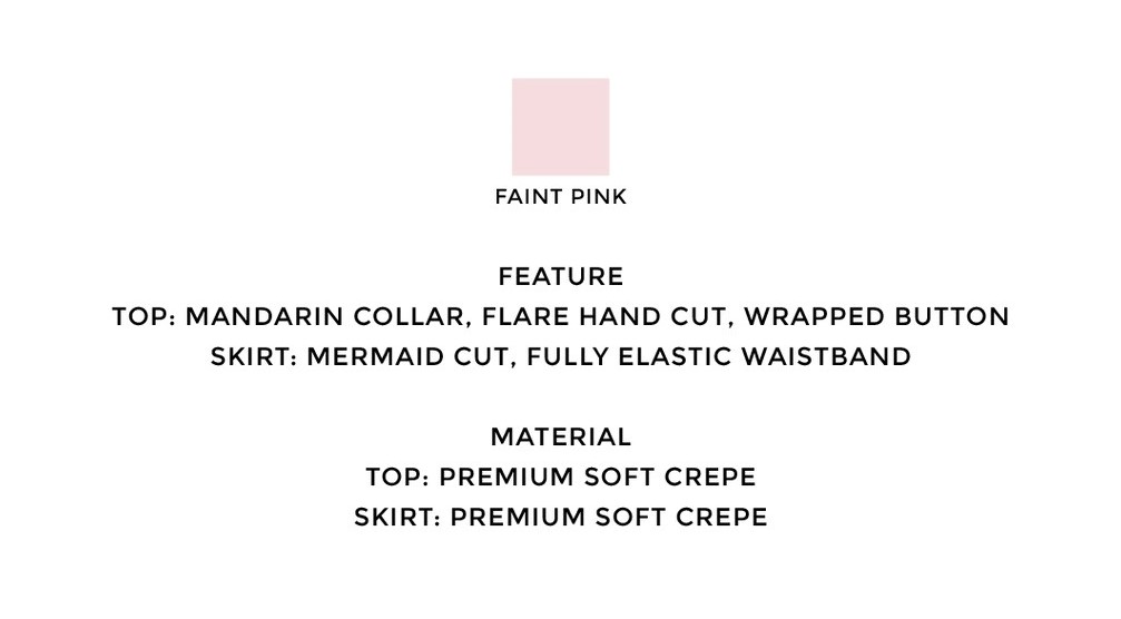 | Highlights | • Mandarin Collar • Flare hand cut • Wrapped Button Skirt • Mermaid cut • Fully elastic waistband |