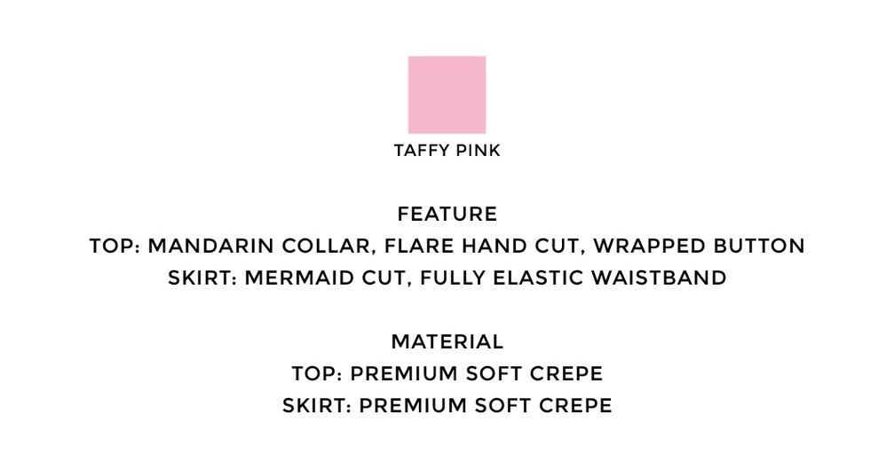 | Highlights | • Mandarin Collar • Flare hand cut • Wrapped Button Skirt • Mermaid cut • Fully elastic waistband |