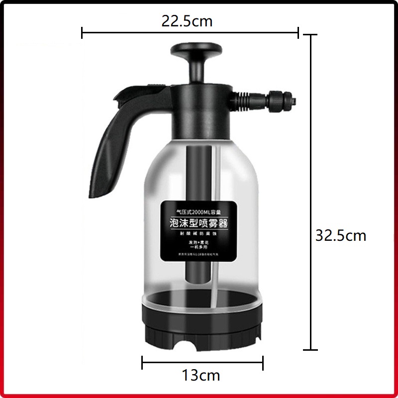 | Highlights | This is a high quality professional hand held compression sprayer. It will spray all types of foaming chemical products . Professional quality sprayer to apply snow foam and other foaming products, produce thick and clinging foam. Comes with 2 nozzle. original one for foam spray . another one for water spray Easy to use pump action sprayer. Simply fill with your favorite snow foam (not supplied), dilute with the correct amount of water, pump the handle to increase the pressure, then simply press the trigger to apply the product onto the vehicle. [Features]: 1. Fitted with Viton HD seals for all water based chemicals; 2. Fitted with a safety pressure release valve; 3. Large 2 Litre tank capacity with level indicator; 4. Large opening for easy filling; 5. Easy assembly and taking apart for cleaning and maintenance, tool-free. [Application]: Perfect for spraying snow foam; Pre-washing cars, cleaning the rims and engine compartments; Cleaning combi steamers, ovens, tables, butchers, freezers; Cleaning windows, mirrors, garden infrastructure, elevation. |