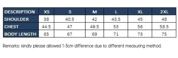 | Size / Product Measurement (L x W x H) | Please refer to the size chart |