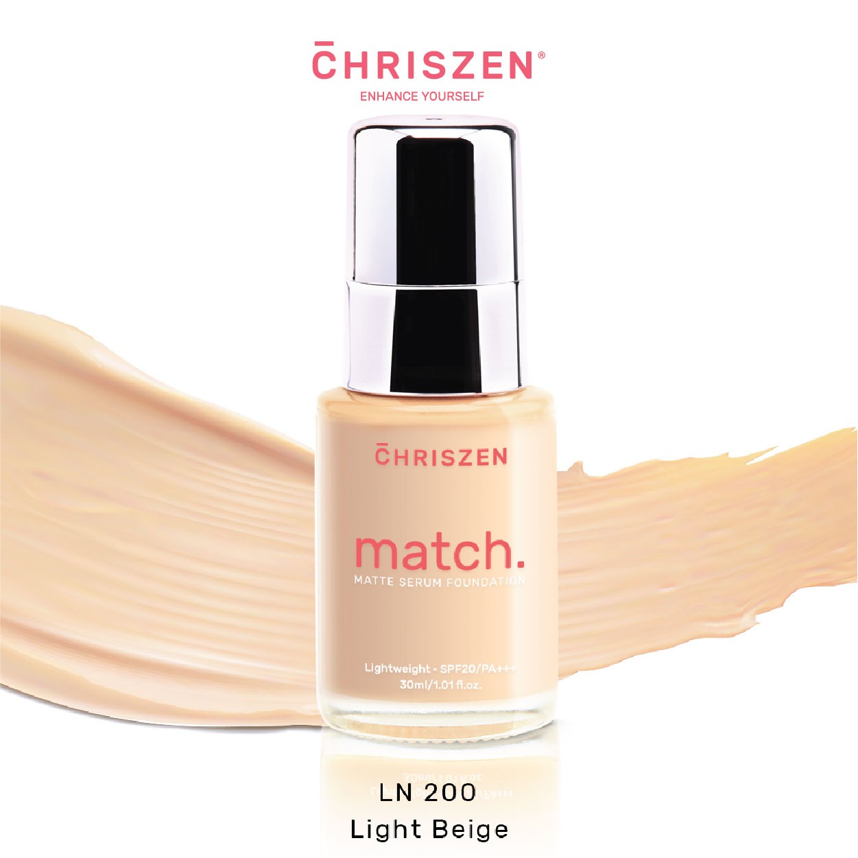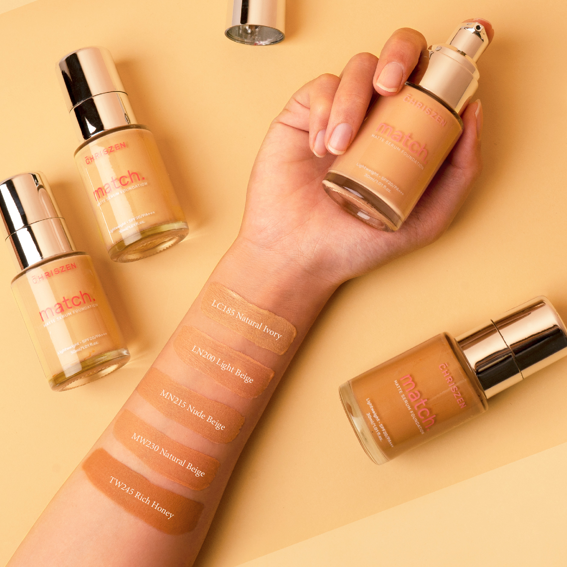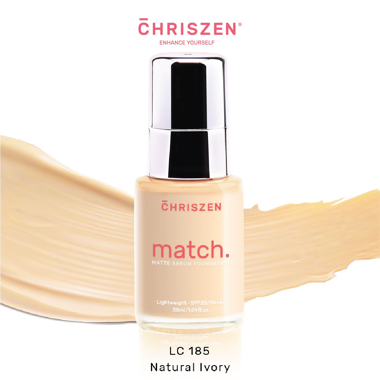 The Chriszen Match Matte Serum Foundation is a natural looking matte finish foundation with 11 active ingredients such as Bearberry Extract, Oat Kernel Extract, Red Sea Algae and etc, and mostly it contains the active agent which naturally lightens and brightens skin which leading to healthier and younger-looking skin.