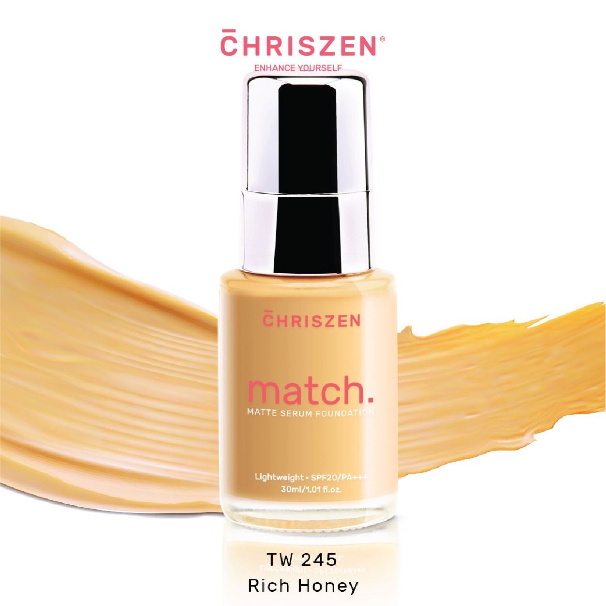 The Chriszen Match Matte Serum Foundation is not like typical Matte Foundation because apart from lightweight formulation and create a smooth spreading , well blended into our skin. It helps to correct hyper pigmentation problems like age spots, freckles, melasma, and acne scars upon using.