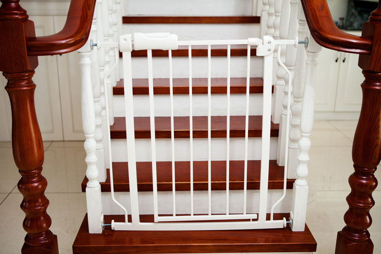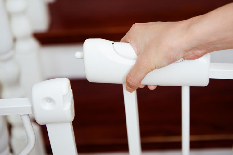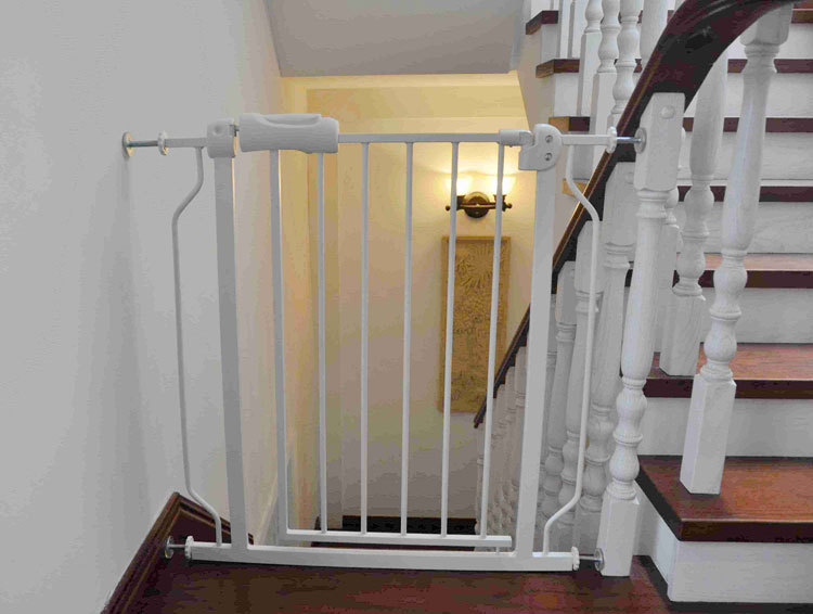 The double-locking handle is childproof yet easy for adults to open with one hand. How to open: press the button and pull the handle back. When used in a stairway, the included door stop allows for added security. For convenience and safety, the door automatically springback after walking through.