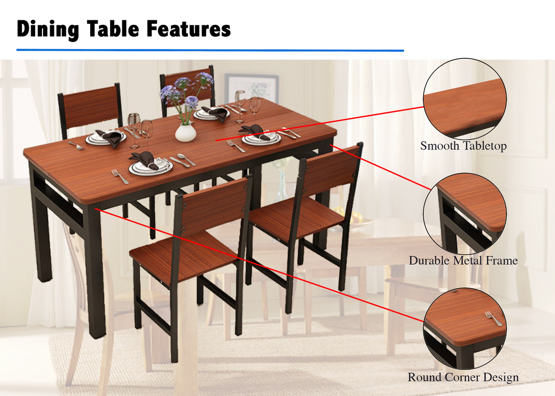| Highlights | - Suitable for Home, Office, Restaurant, Cafe - Material: MDF Board (Medium Density Fibreboard) and Durable Steel - Antiscratch - Water proof surface - Table with rounded corners designed. - Smooth Tabletop - Easy to clean |