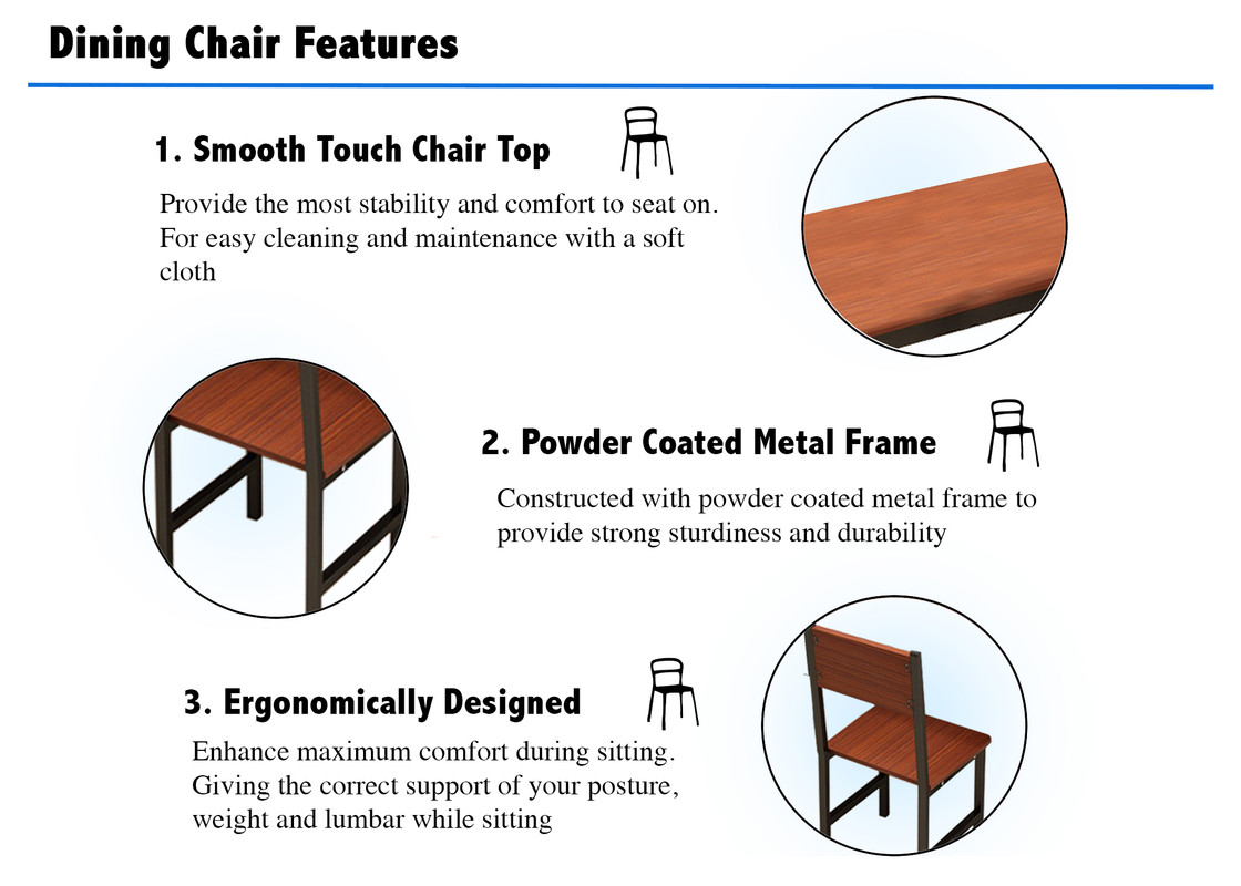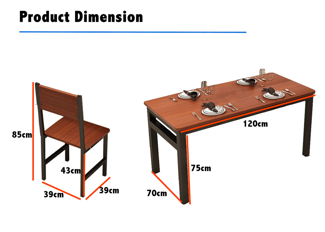 Modern and beautiful dining table which is simple and generous in appearance, which has quality standard and suited to any dining spaces. Suitable for Home, Office, Restaurant, Cafe use. A table which suits well for 4-5 peoples for a business talk, chat with friends have dinner together. Material: MDF Board (Medium Density Fibreboard) and Durable Steel. MDF is often considered a level above plywood. It is denser, strong, and more durable. Antiscratch and water proof surface, no worries anymore about spilling the water as it will not affect the table.
