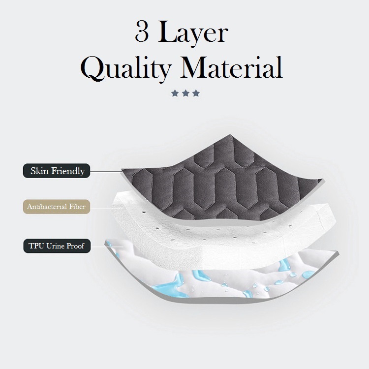 | Material / Ingredients | a layer of Antibacterial Fiber, a layer with TPU Urine Proof and a outside cover. |