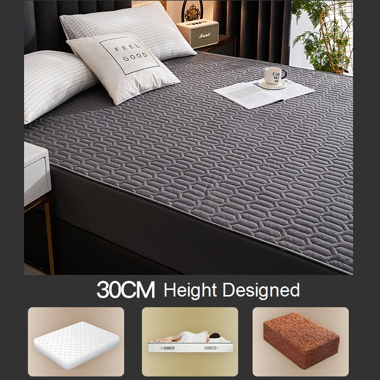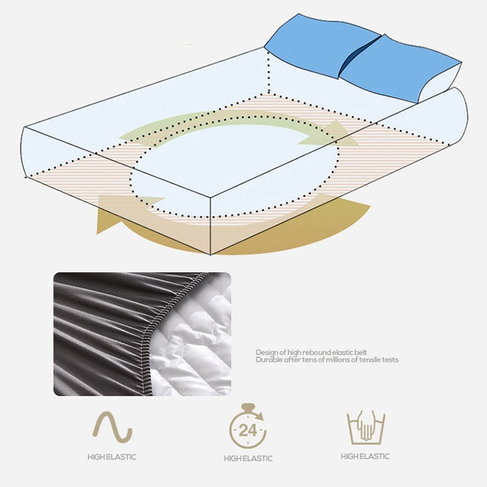 | Highlights | - High Elastic and Durable - Full Grey with Water Resistance - Anti-Bacterial - Soft and Skin Friendly - Certified with TPU Urine Test - Size: Single / Queen - Dimension: 200 x 150cm (Queen) / 200 x 90cm (Single) - Weight: 2.5kg (Queen) / 1.5kg (Single) |