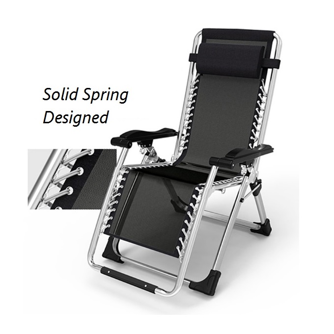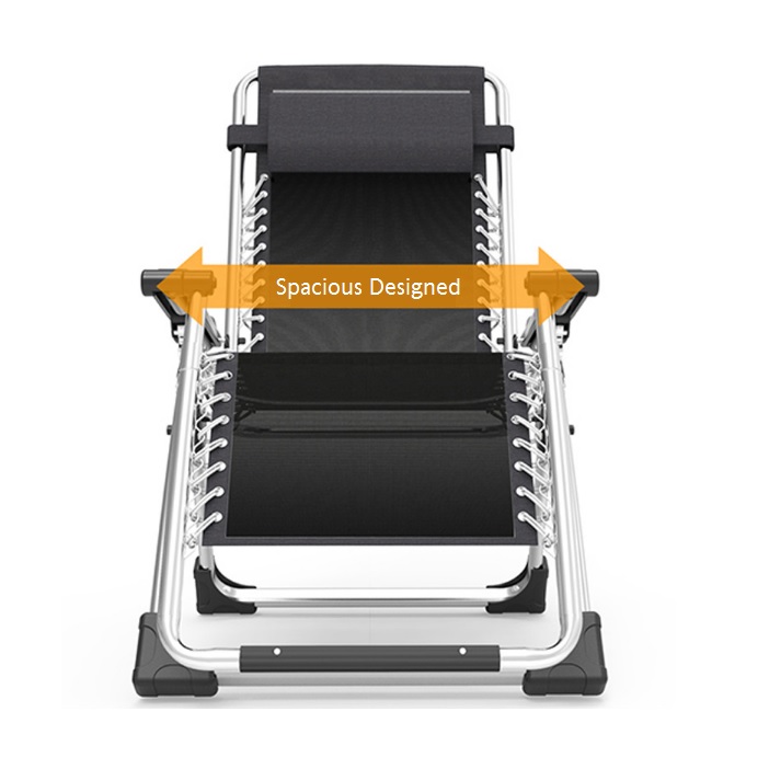 OSUKI Relax Chair Foldable Adjustable with roomly and comfortable size: 99 L x 67 W cm. Adjust according to the body comfort (0' - 170') and suitable for seating,laying,sleeping and napping. Durable construction: Powder-coated steel tube framing and all-weather, fade-resistant Textilene sling seat and seat back material.Comes fully assembled : Includes 1 removable headrest pillow so you can easily relax whenever you use the chair. Lockable smooth recline function: Lock your position by using the knob located under the armrests; As this is a zero gravity lounger, it allows you to stretch out into a comfortable reclined state without being completely flat with solid aluminium lock. User friendly design, relax chair with free cup tray, smooth arm rest ,anti slip and solid spring design.