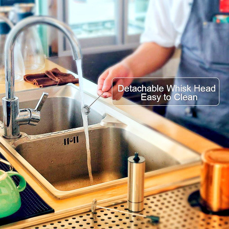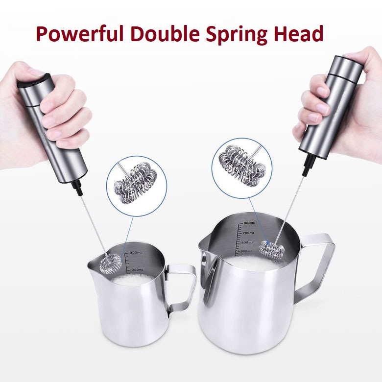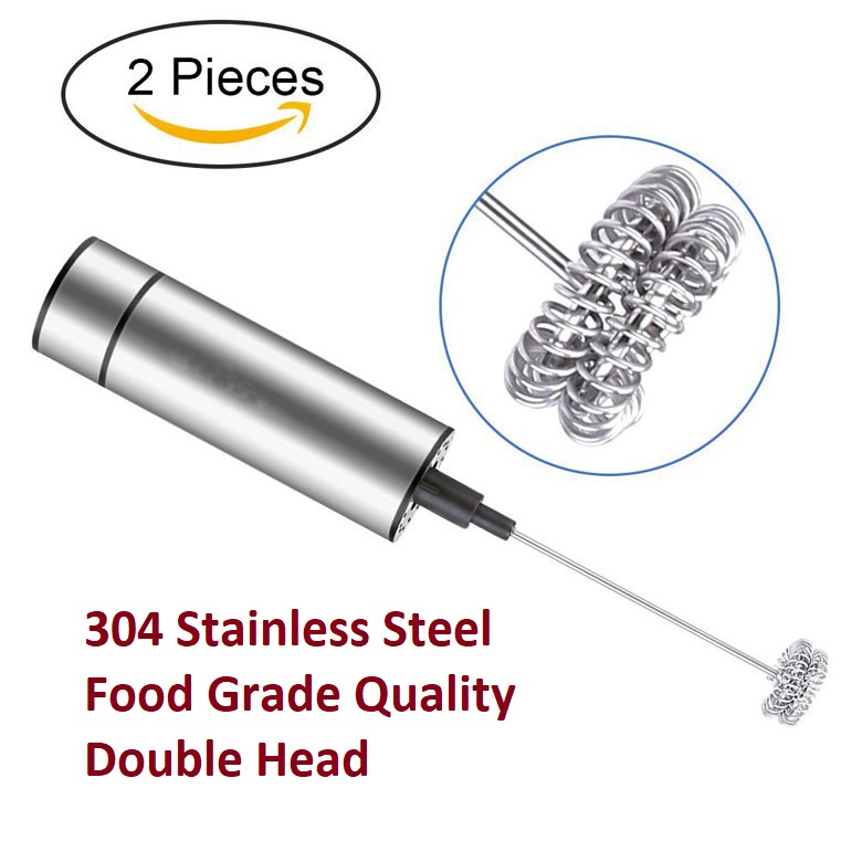 OSUKI Stainless Steel Coffee Milk Frother Mixer Stirrer (Double Spring) made by food-grade stainless steel quality double head, safety and health to use. 1 touch button easy to use, designed by powerful motor to create smooth and delicate whipped cream you always wanted. Make your drinks frothy and smoothy, great for foams milk, cappuccinos, lattes, espressos, or hot chocolate only in few seconds. Can be also used for whisk egg, quickly mush eggs without spilt around. Egg beater will not damage cookware or bowls, easy to clean with a damp cloth.