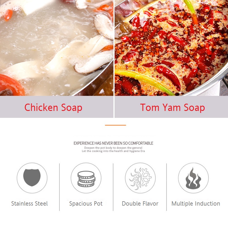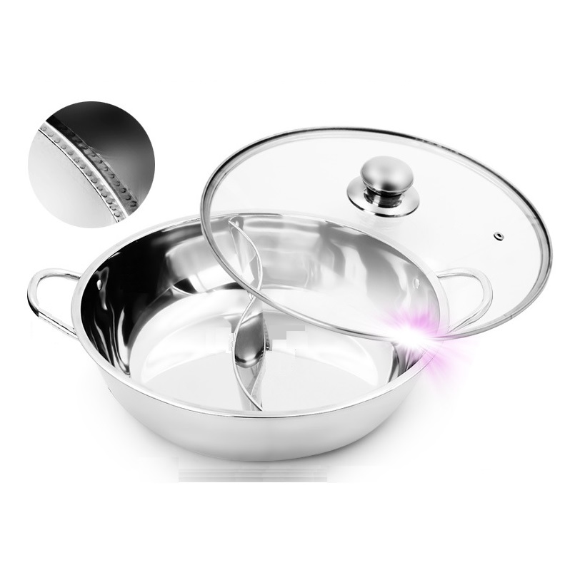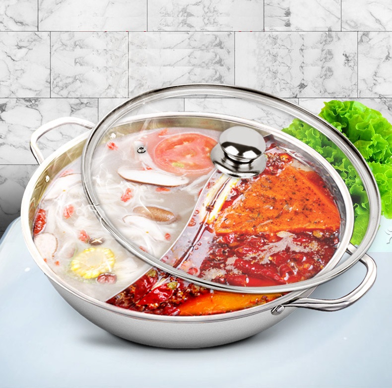 | Highlights | - Two partition for different flavour taste need. - High quality stainless steel with glass cover - Size: 36 cm (L) x 36 cm (W) x 10 cm (H) - Food-grade non-magnetic stainless steel, rust resistant. - S-type separator, stable connection, durable for long-term use. - High encryption spot welding procedure. |
