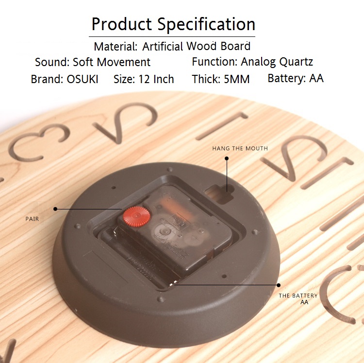 OSUKI Wall Clock 30cm Fiber Wood W7 - Brand new and high quality, the clock surface is waterproof and moistureproof processing, long do not fade, no glass bell jar, pointer appears. Elegant and timeless design, it's good as a decoration. Noiseless design brings you comfort and peace. Suitable for sitting room, bedroom, restaurant, office, study and etc. Power: AA Battery. Material: Artificial Wood Board. Clock size: 12 inch. Thickness: 5mm