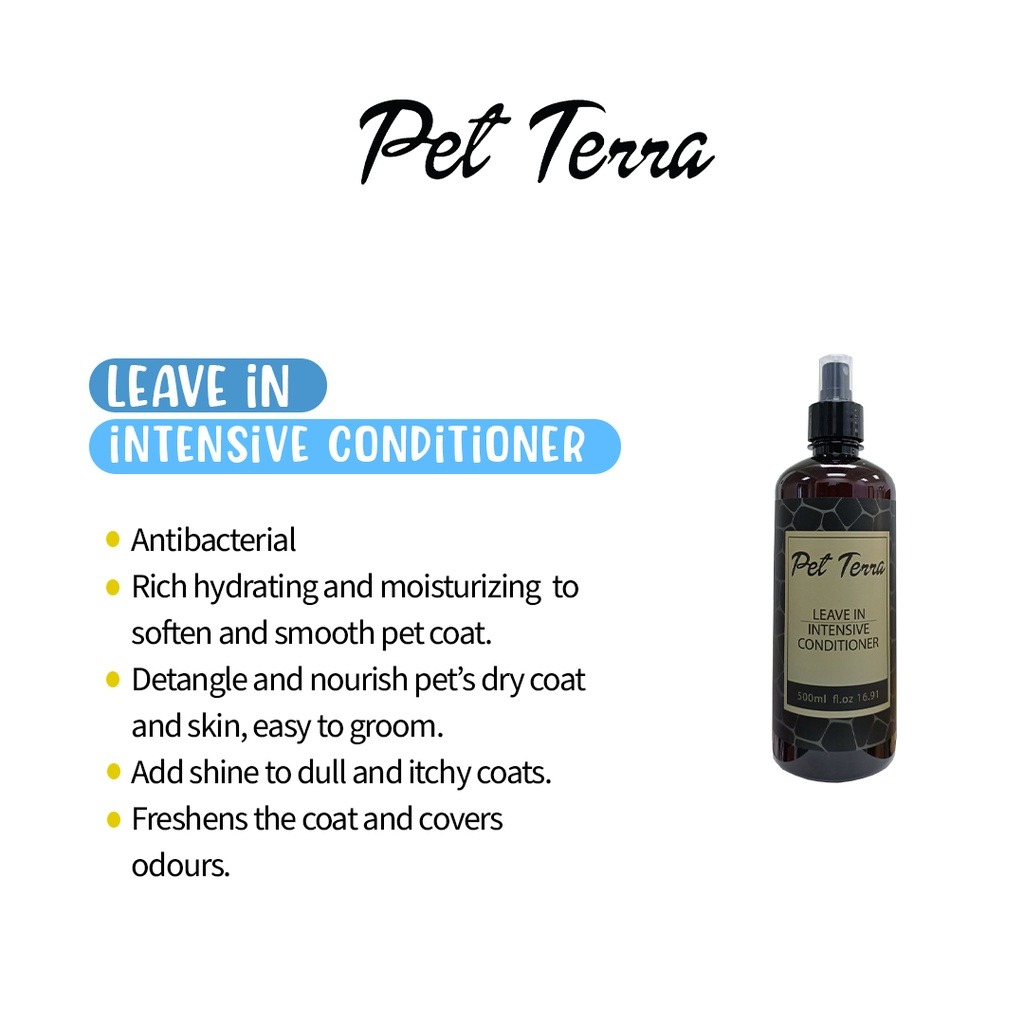 | Highlights | • Antibacterial. • Rich hydrating and moisturizing to soften and smooth pet coat. • Detangle and nourish pet's dry coat, easy to groom. • Add shine to dull and itchy coats. • Freshens the coat and covers odours. |
