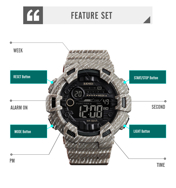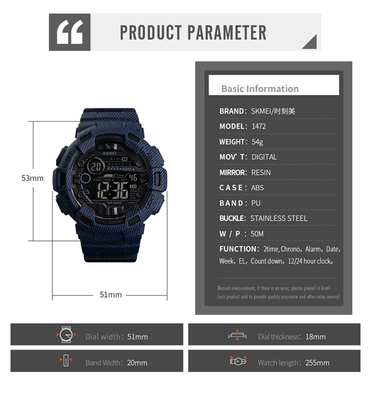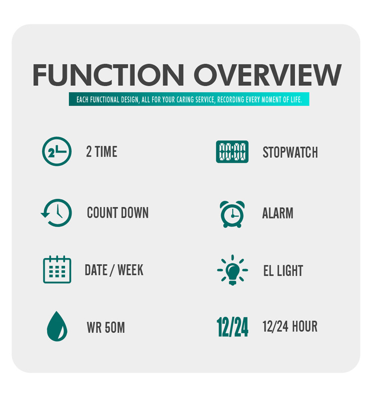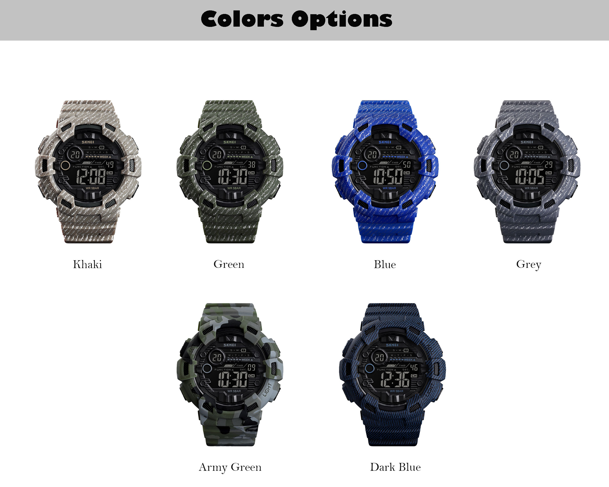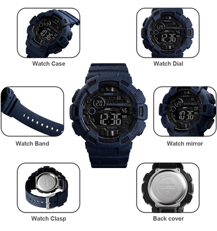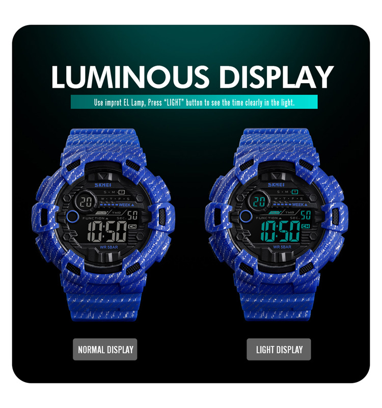 | Highlights | Dial observation : Round Movement: Digital Movement Waterproof depth : 50M - 12 Digits, Display Hour, Minutes, Seconds, Month, Day and Week Daily Alarm and Chime hourly - 12 / 24H, Auto Calendar - 1/100 second Chronograph with split count EL backlight Features : chronograph, stopwatch, full calendar, backlight, waterproof, alarm Suitable for study, outdoor, casual events and etc |