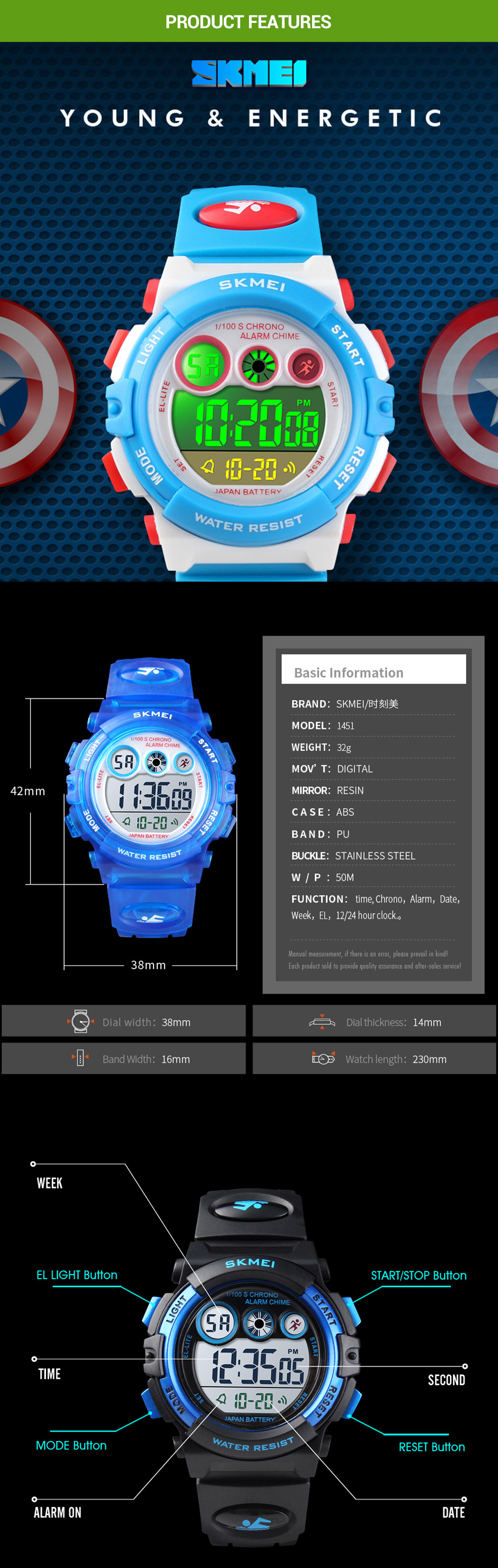 | Highlights | Dial observation : Round Movement: Digital Movement Waterproof depth : 50M - 12 Digits, Display Hour, Minutes, Seconds, Month, Day and Week Daily Alarm and Chime hourly - 12 / 24H, Auto Calendar - 1/100 second Chronograph with split count EL backlight Features : chronograph, stopwatch, full calendar, backlight, waterproof, alarm Suitable for study, outdoor, casual events and etc |