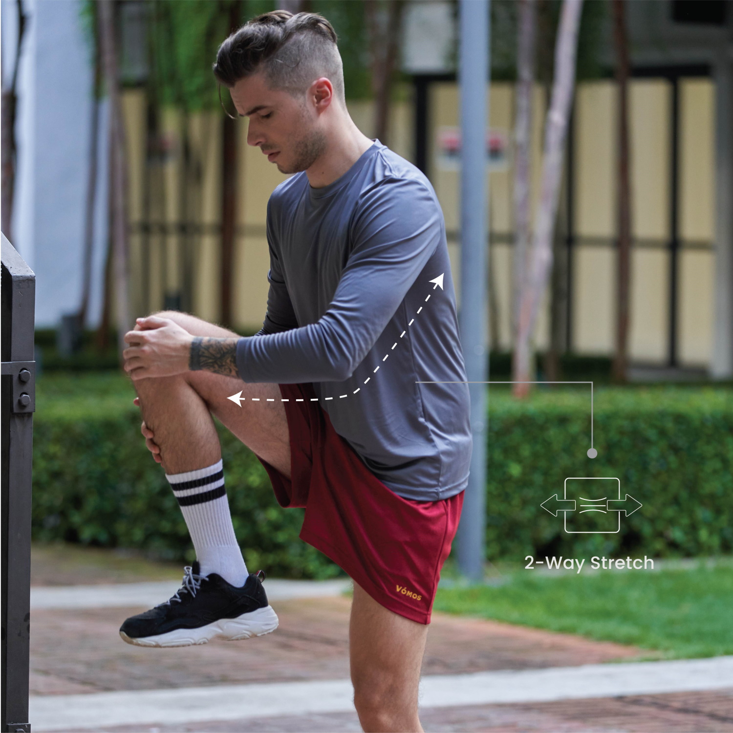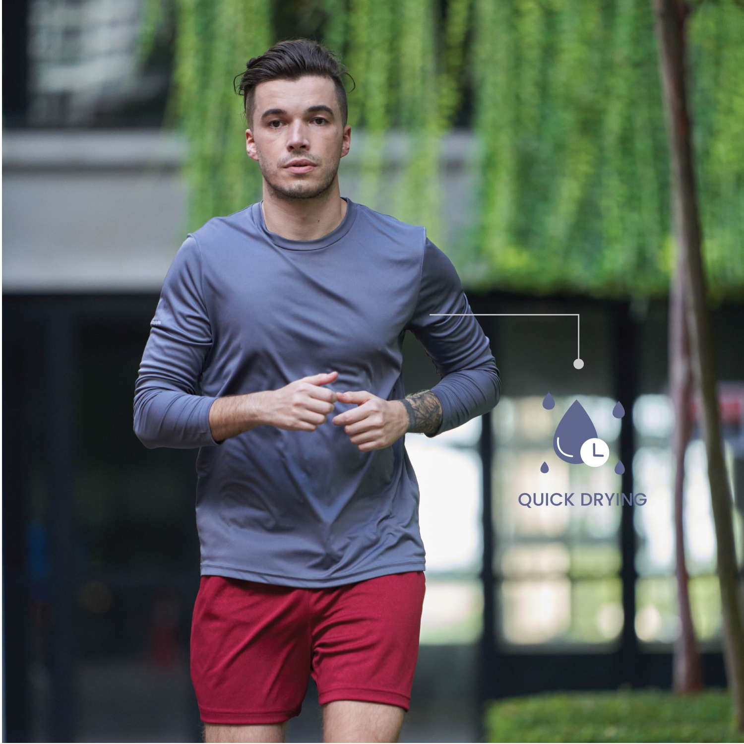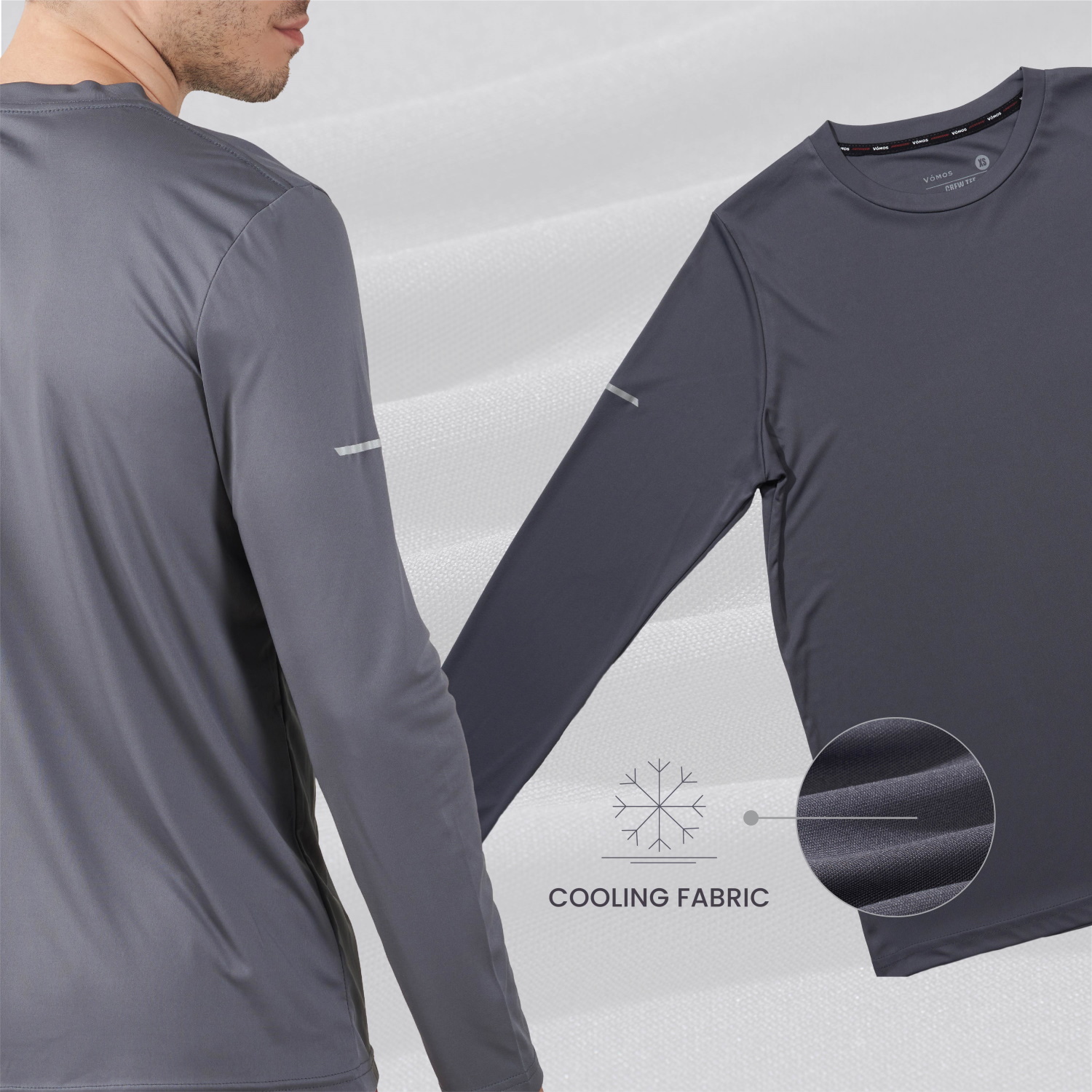 Vomos Air-Breath Quick Dry Fit Supermicro Cooling Man Long Sleeve Crew Plain Sport T Shirt (Black)