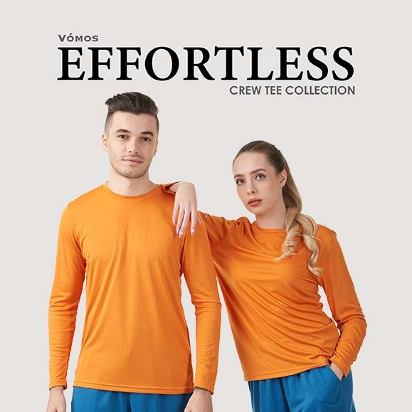 Vomos Supermicro Cooling Unisex Long Sleeve Crew Plain Sport T Shirt - Orange