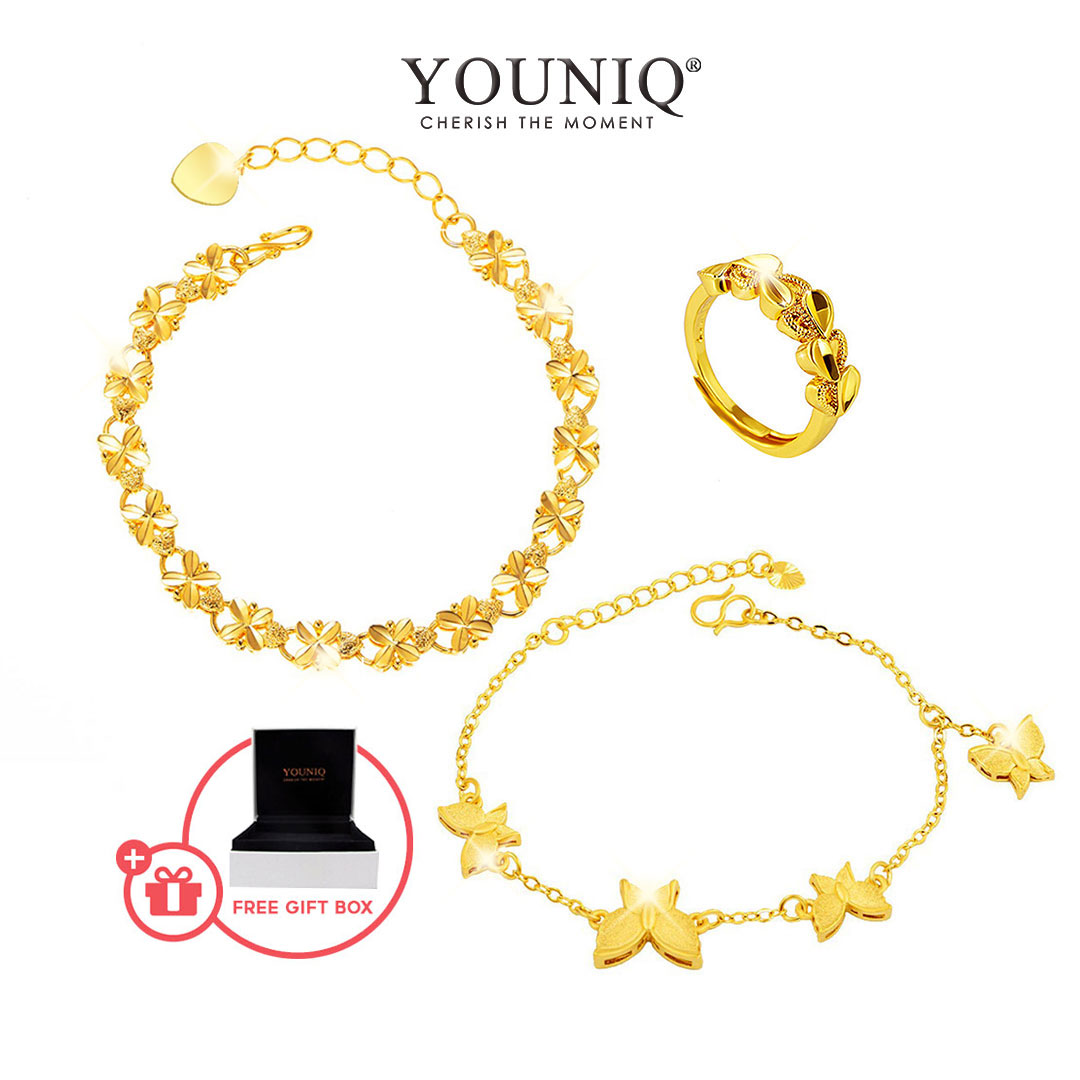 YOUNIQ 24K Gold Plated Butterfly Flower Women Bracelet & Butterfly Bracelet (Free 1 x Premium Abundance Heart 24K Gold Plated Ring)