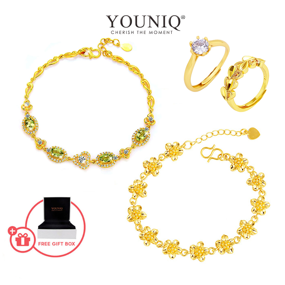 | What's In The Box | 1 x Karem Bracelet (with Light Green Cubic Zirconia Stone) 1 x Chamomile Bracelet Free Gift 2 x Ring (Random Design) 1 x Gift Box |