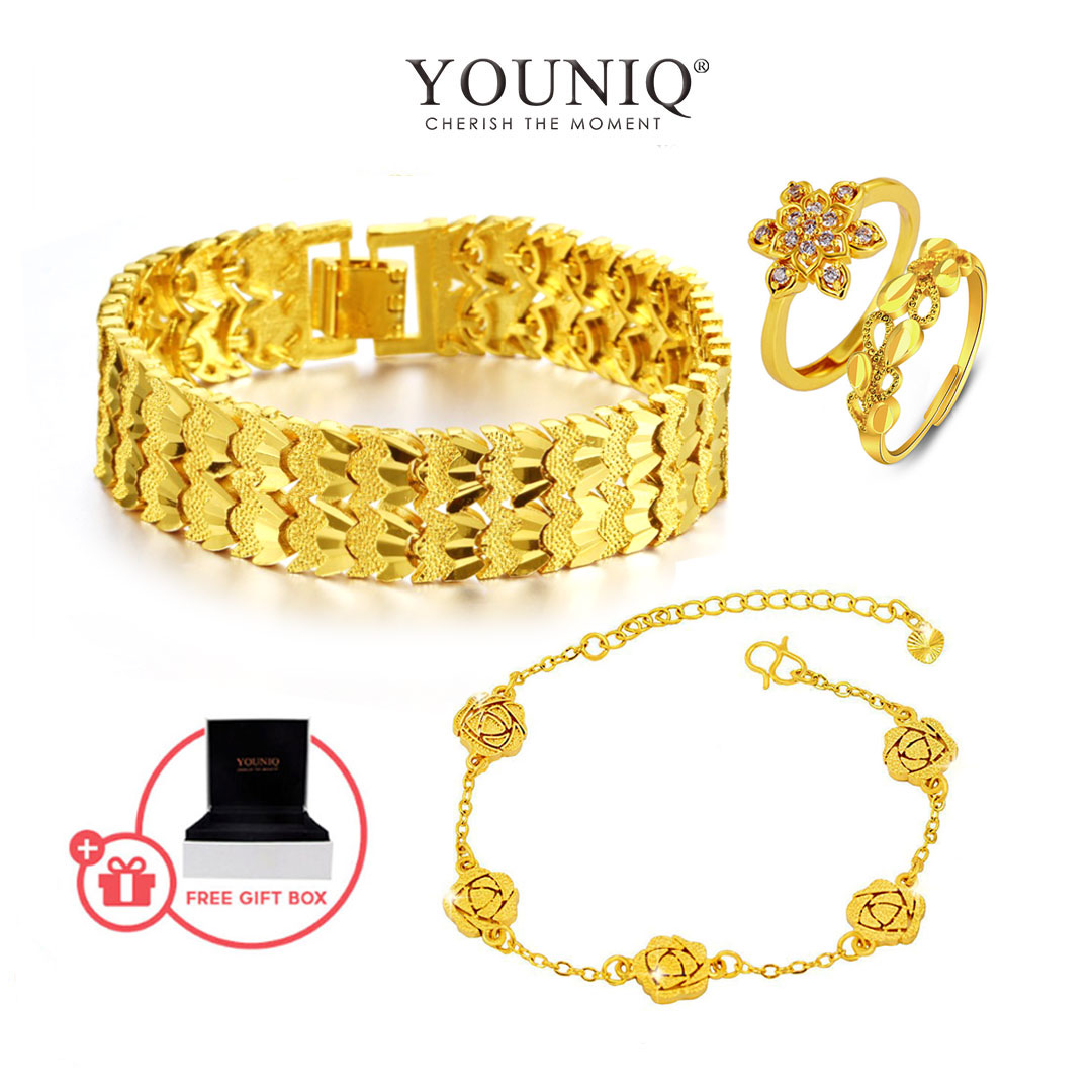 | Size / Product Measurement (L x W x H) | Bracelet (Kara Heart) - 20cm (Adjustable) Bracelet (Rose) - 17.5cm + 4.5 (Extension) Ring: Asia 5 - 23, Diameter: 1.41cm - 2.06cm (Adjustable) |