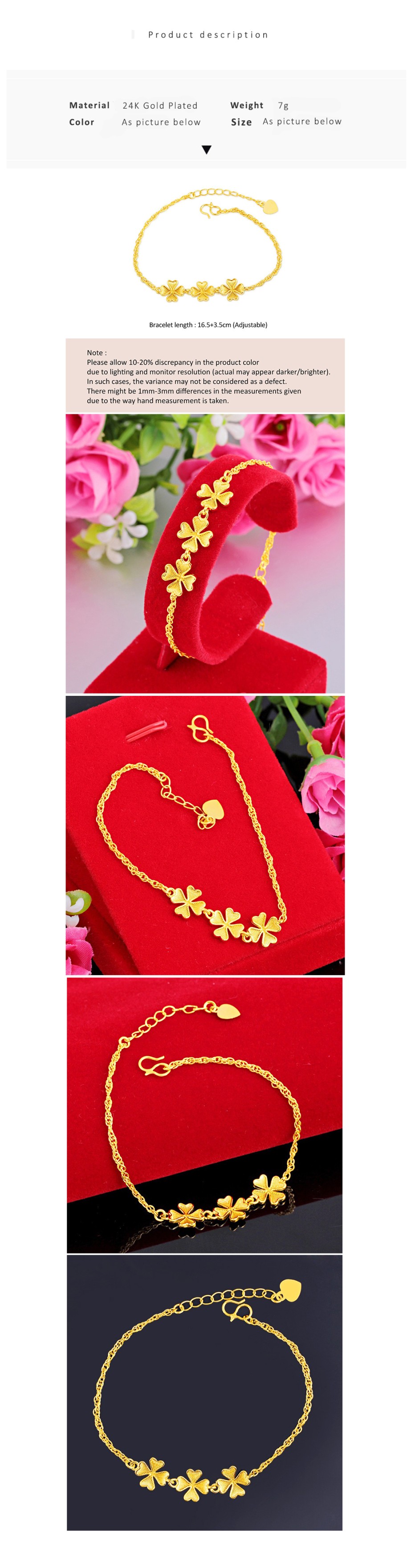 | What's in the box | 1 x YOUNIQ Lucky Clover 24K Gold Plated Bracelet 1 x YOUNIQ Premium Gift Box |